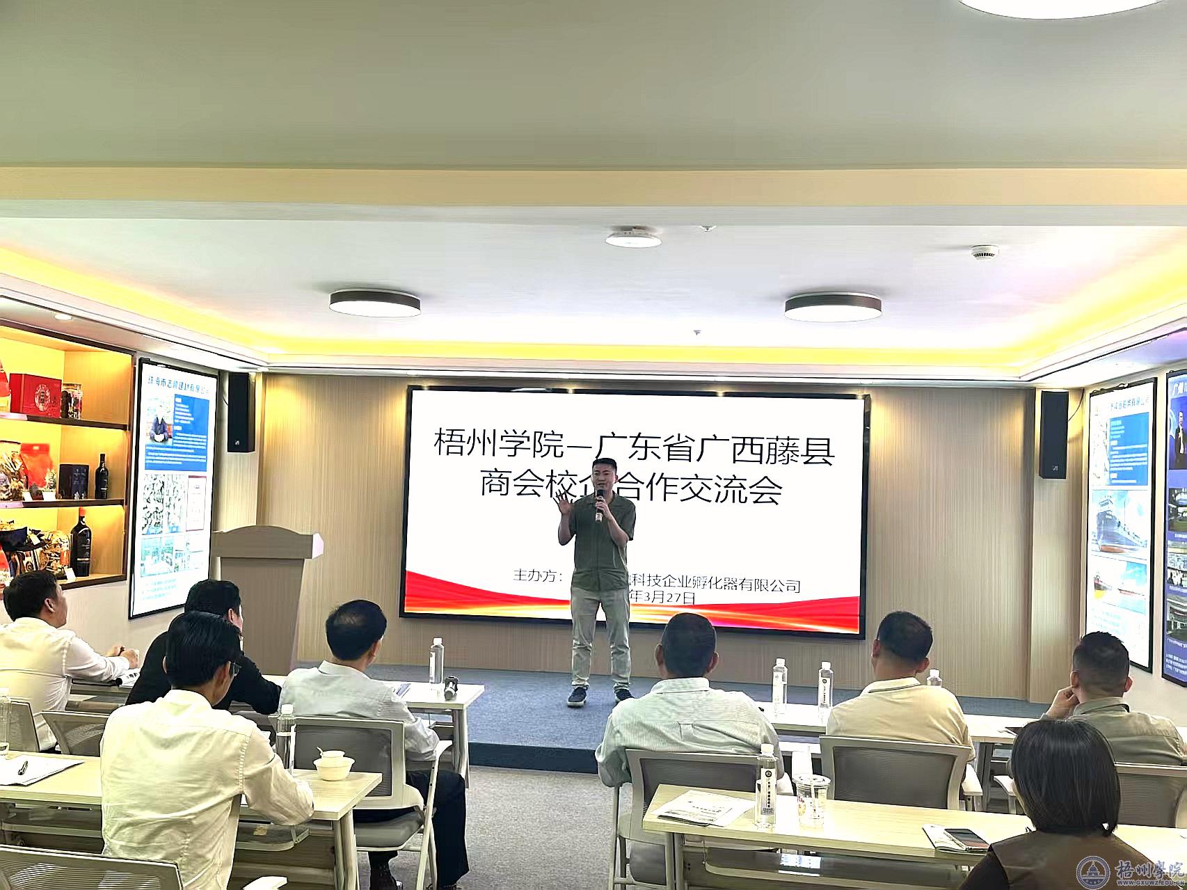 3月27日,学校党委副书记梁业华率队走访广东省广西藤县商会,就深化校企合作、拓展毕业生就业岗位等工作展开深入交流。广东省广西藤县商会会员、企业代表,学校学生工作部(处)、经济学院、电子与信息工程学院等相关负责同志参加交流活动。