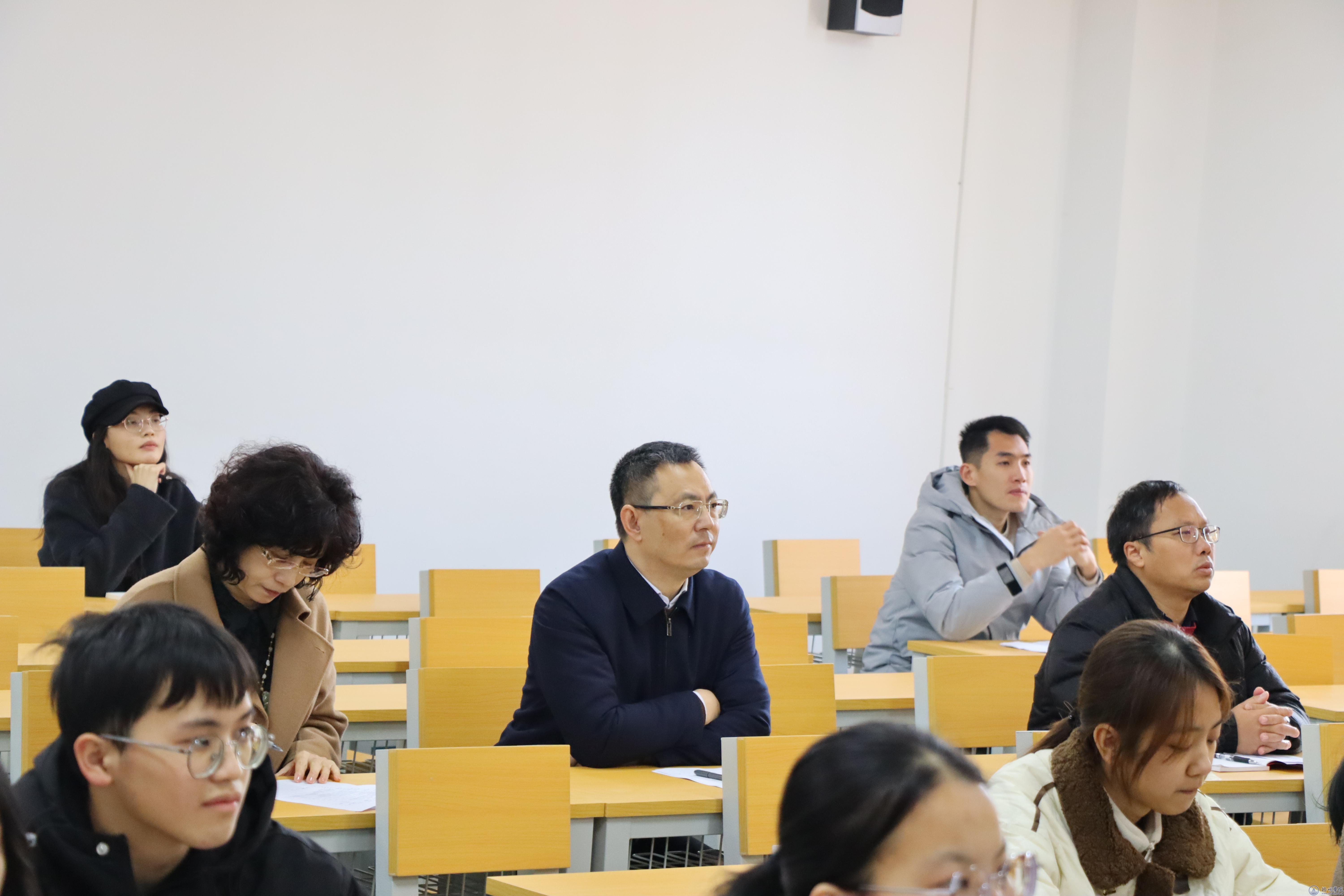 副校长覃雄彪在听课(梁志慧摄)