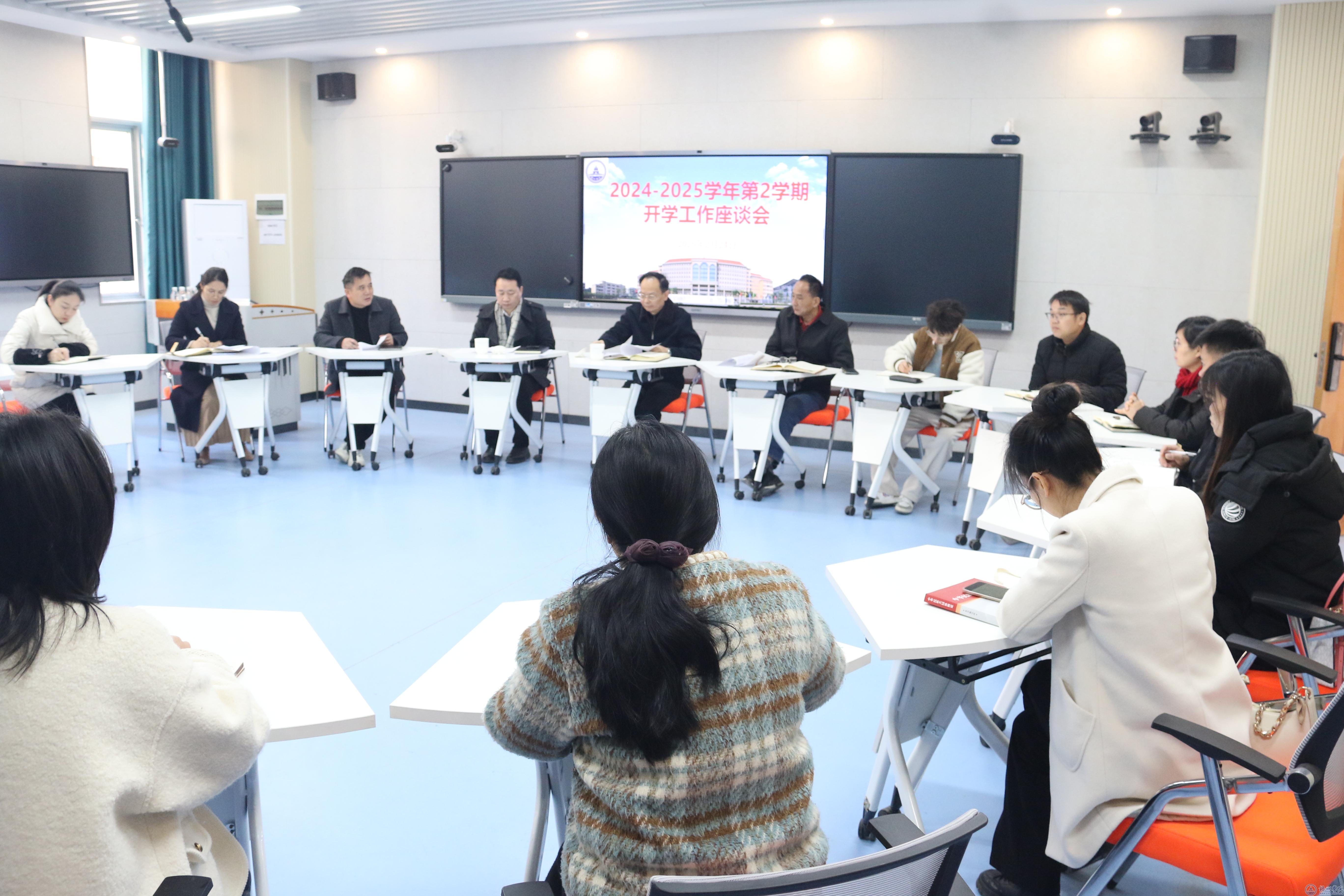 听课结束后,学校领导前往各二级学院召开座谈会。会上,学校领导对教师的课前准备、教学态度、教学设计、课堂氛围等表示肯定。各二级学院汇报了师生返校的具体情况、新学期教学准备工作,以及在新学期中遇到的主要问题和困难。学校领导听取汇报后,提出工作要求:各教学单位要立足学校发展全局,在申硕攻坚、本科教育教学审核评估等重点任务上精准发力,压实责任;优化人才培养方案,强化实践教学环节,提升人才培养质量;聚焦科学研究,注重高层次人才本土化培育,激发科研内生动力;着眼整体发展氛围营造,倡导全员担当作为,凝聚奋进力量,为学校向着更高目标迈进贡献力量。
