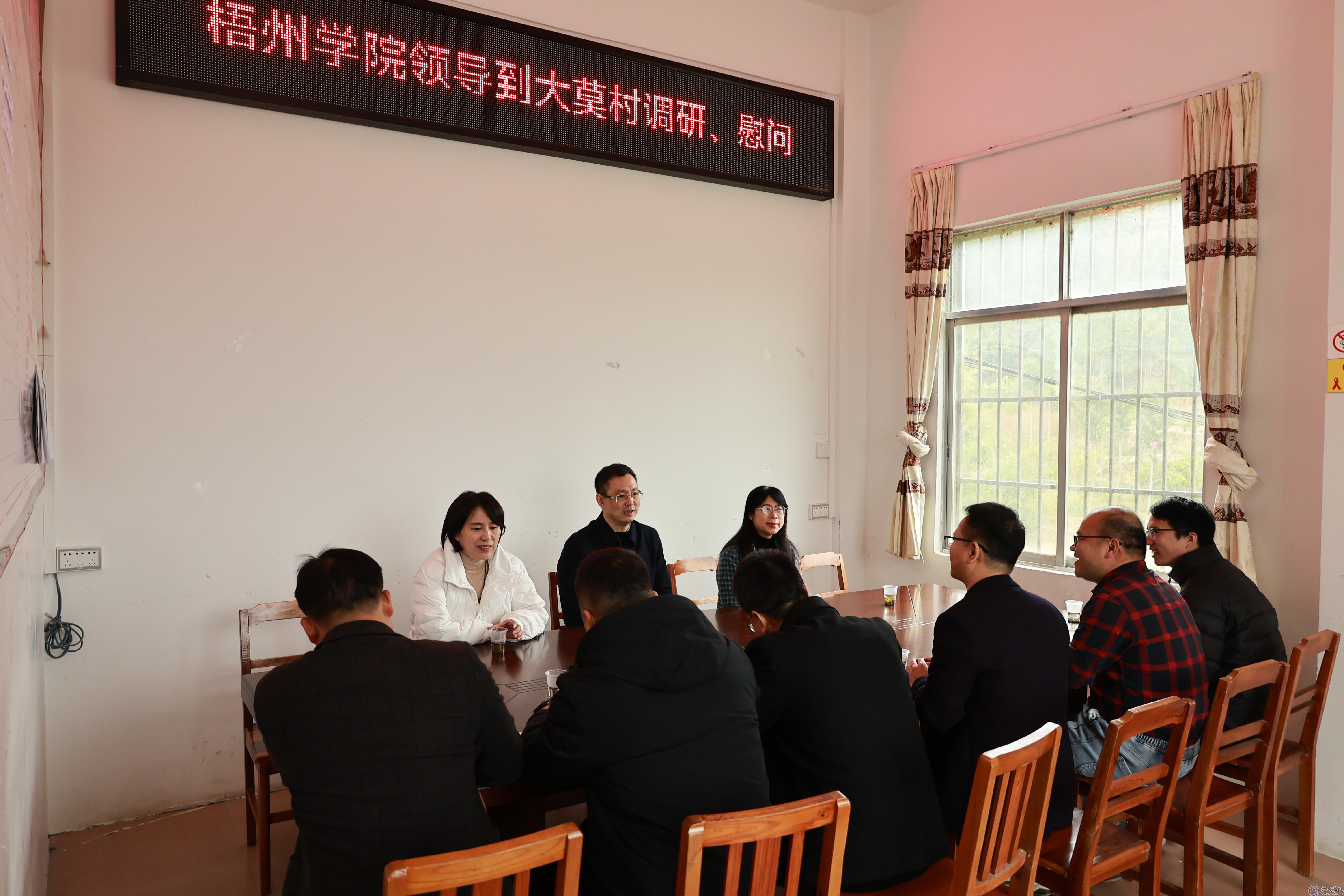 12月27日,校党委书记童晓晖一行赴蒙山县调研,并对学校定点帮扶的文圩镇木护村、新圩镇六桂村、汉豪乡白竹村和金垌村、陈塘镇罗应村和大莫村驻村第一书记走访慰问。蒙山县委常委、副县长、驻村工作队队长李泽庆,各乡镇相关负责同志等陪同调研,学校党委办公室、党委组织部相关负责同志参加了调研。
