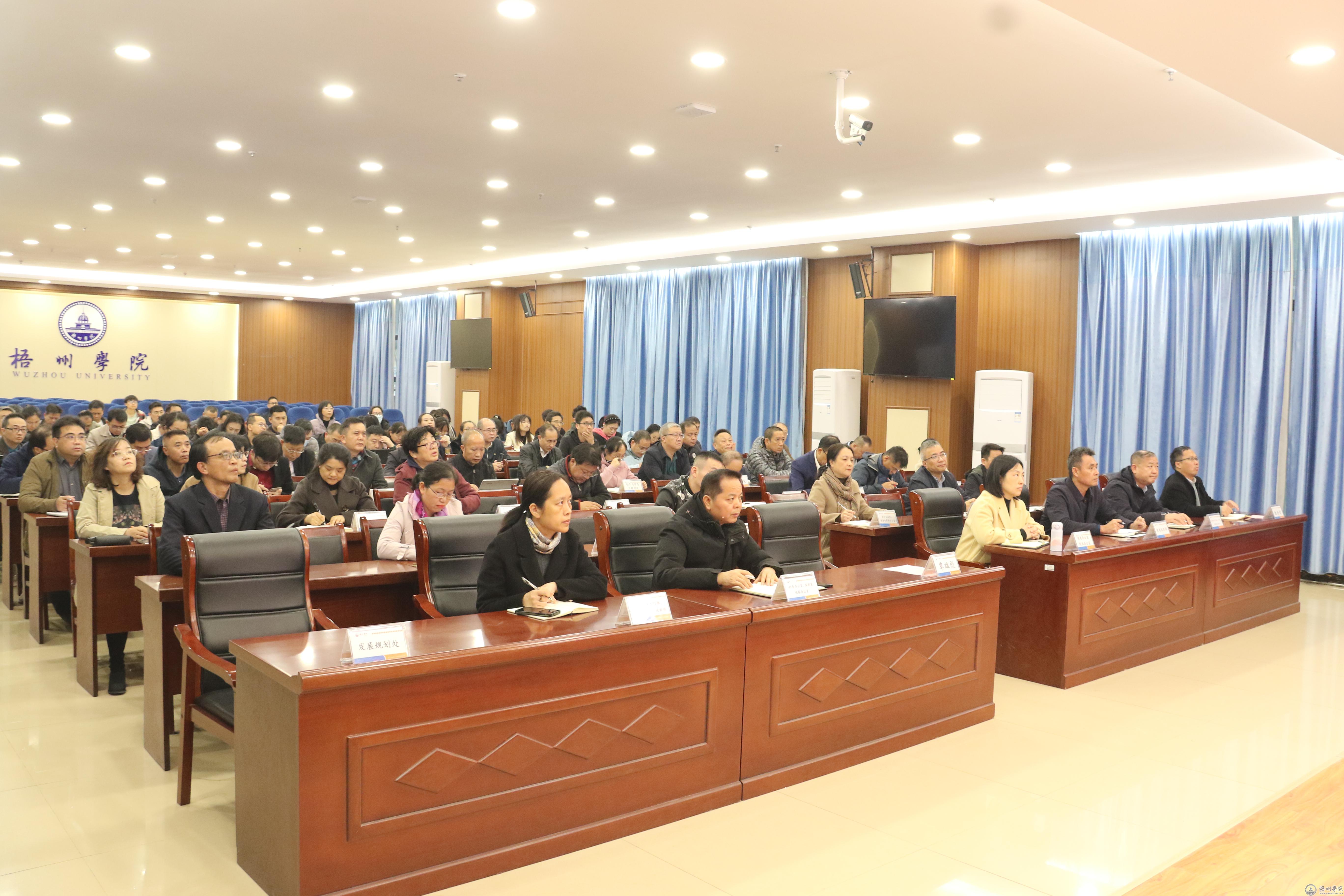 学校教育教学审核评估工作专班成员、兼职教学督导组组长,各职能部门负责人,各二级学院院长、副院长、教研室主任及教务处、质量监控与评估中心相关工作人员近110人参会。
