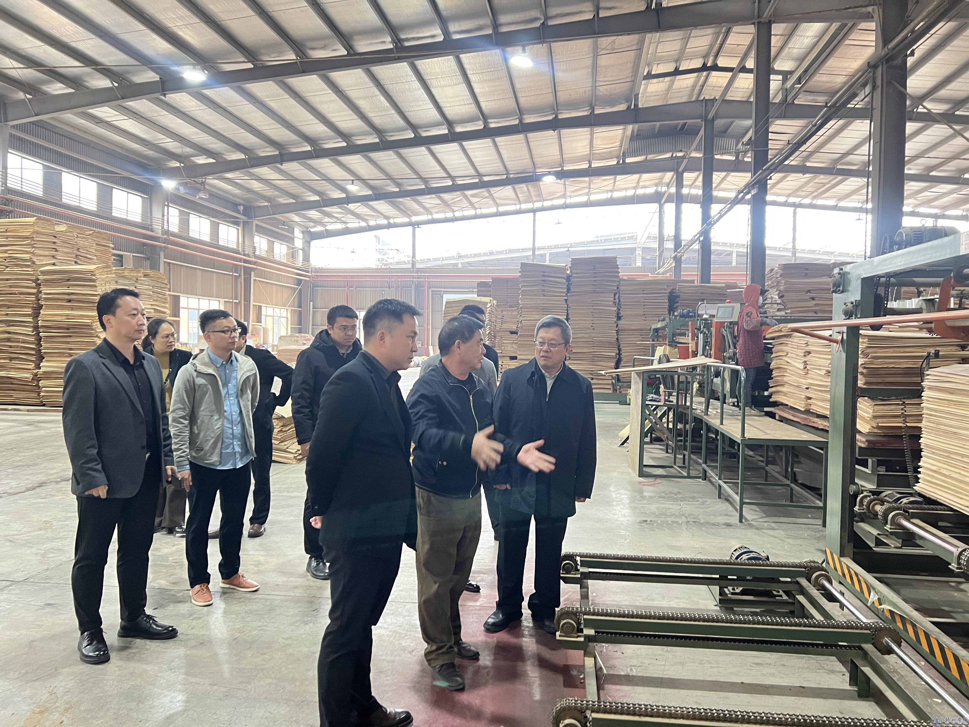 调研组一行到扶绥县山圩镇工业园区走访调研。广西大东洋木业有限公司负责人向杨奔校长一行介绍了企业的生产经营情况,就企业管理模式、人才需求状况等方面进行了深入的交流。调研组实地参观企业生产车间,与详细了解企业的生产经营状况、技术创新及人才需求等情况;与企业深入探讨高校人才培养、产教融合实施路径、校企合作创新模式等问题。调研组到广西国有东门林场林业高价值树种栽培和生态综合经营示范基地开展实地调研,双方就围绕人才需求、产教融合、人才培养等方面内容进行深入讨论和交流。