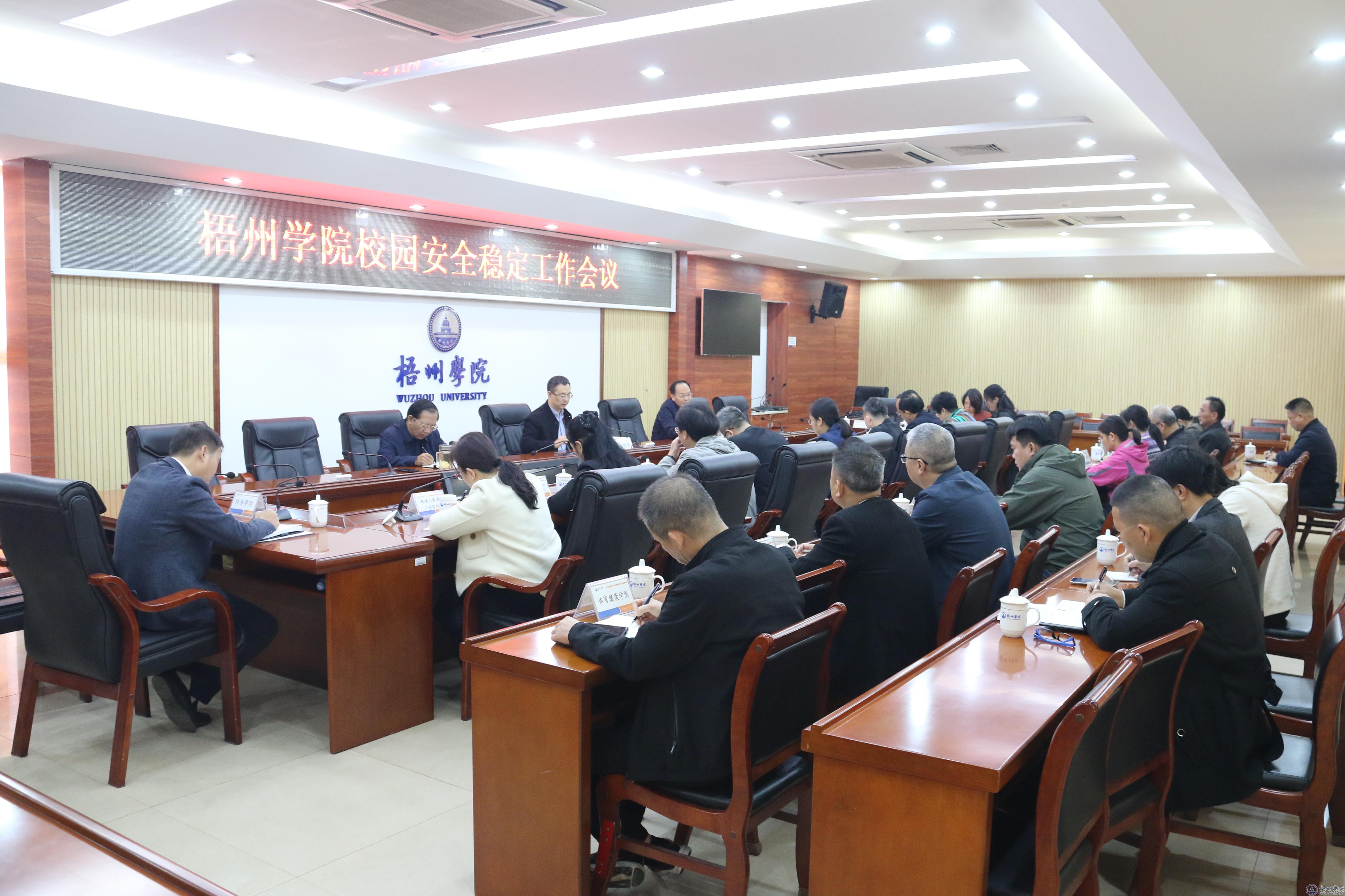 11月22日上午,学校在明理楼第一会议室召开校园安全稳定工作会议。学校党委书记童晓晖、党委副书记梁业华、副校长邱房贵出席会议,党委宣传部、学生工作部(处)、国际交流处、后勤基建处、保卫处相关负责同志,各二级学院党委书记、副书记参加会议。