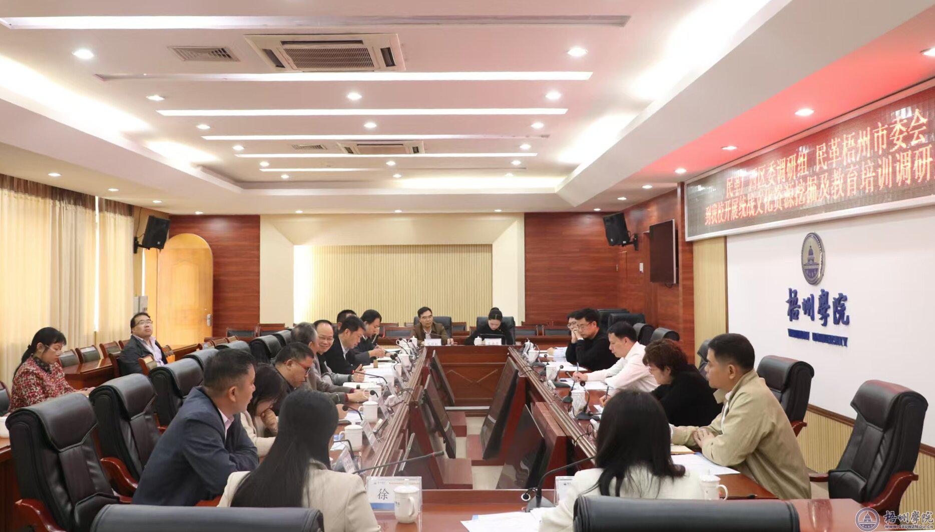 11月25日上午,民革广西区委会副主委佟义东与梧州市政协副主席、民革市委会主委钟锋一行13人到我校开展统战文化资源挖掘与教育培训调研。我校党委副书记梁业华接待了佟义东一行。