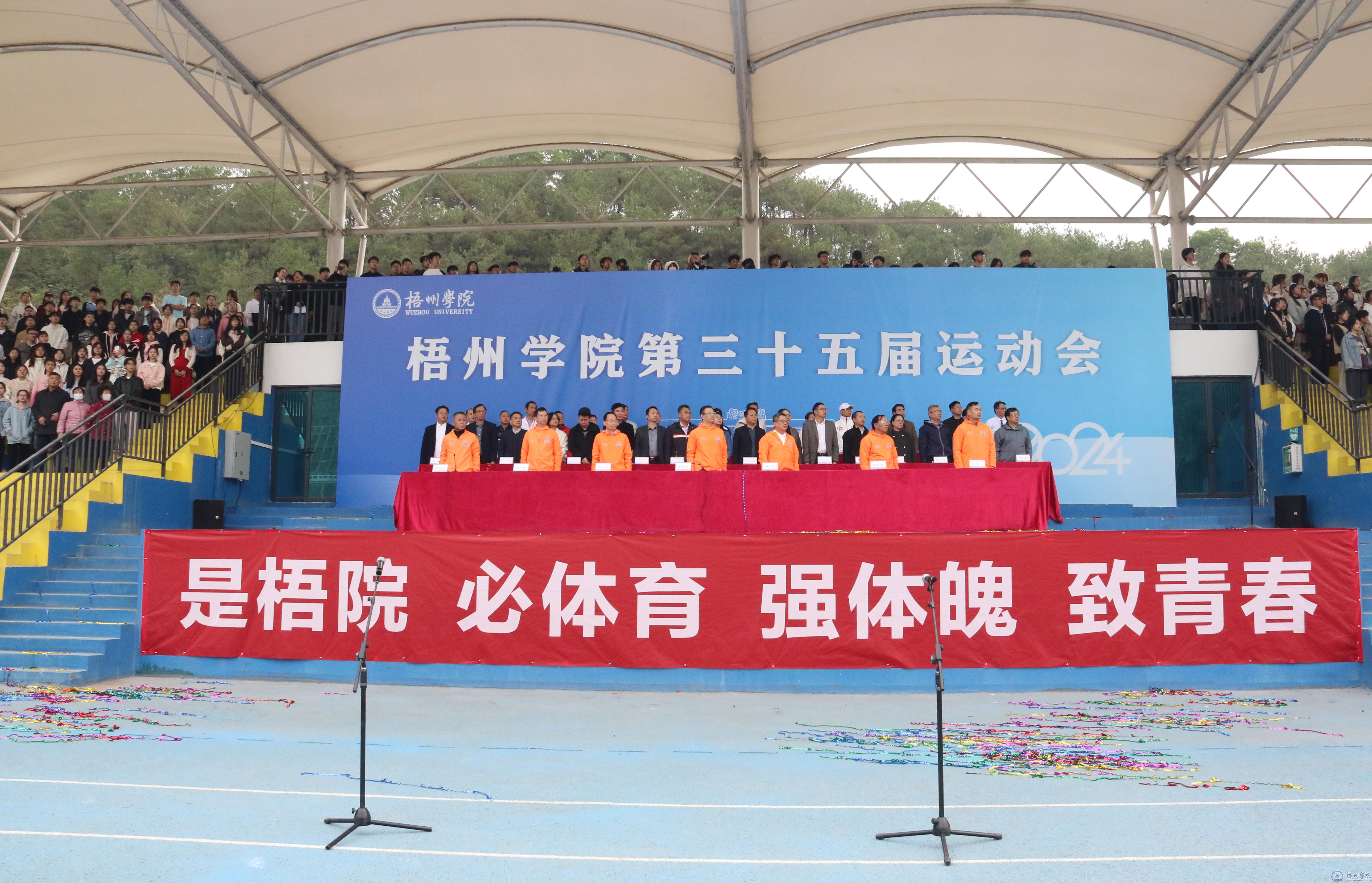 校长杨奔在开幕式上致辞。他指出,学校始终积极响应国家政策,不断加大对体育教育的投入,完善体育教育设施,丰富体育教育形式,努力为师生提供更好的体育锻炼条件和机会,让梧院从“是梧院,则体育”走向“是梧院,必体育”。他表示,学校将继续拓展梧院体育新领域,构筑新平台,推动学校体育教育事业朝着更丰富,更具有活力的方向发展。他希望本次运动会全体运动员在运动场赛出水平、赛出风格,用拼搏和奋斗诠释体育精神的内涵;全体裁判员秉持专业精神,认真履行职责,圆满完成各项裁判工作。