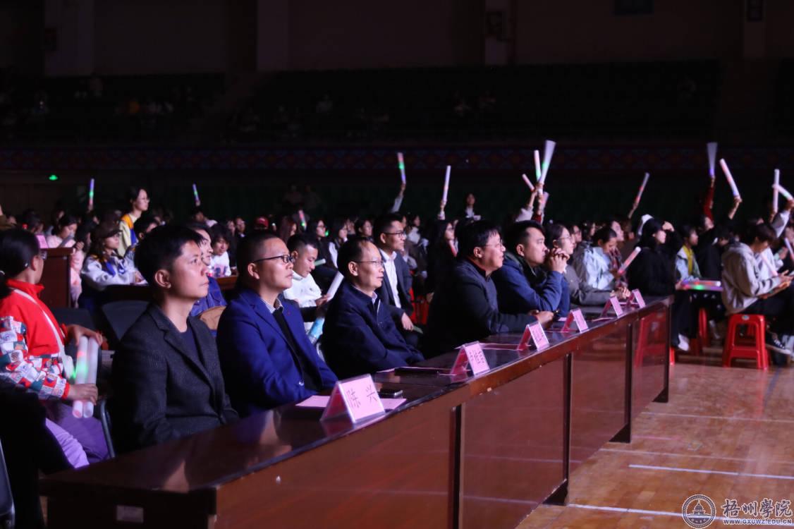 11月30日,由共青团梧州学院委员会主办,梧州学院学生会承办,各二级学院学生会协办的梧州学院“音为爱·梦承载——乐动韶华”2024年校园歌手大赛总决赛在体育馆三楼精彩上演。学校党委副书记梁业华,校团委、各二级学院的领导老师和2000多名学生在现场观看比赛,另有8300多人通过直播观看了比赛。大赛邀请了中国音乐学院高级访问学者、中国音乐家协会会员、中国声乐协会会员莫飞鹏,梧州市音乐家协会副主席谭媛媛以及校内音乐教师练远媚、黄泽寰、杨含秋共5位老师担任评委。