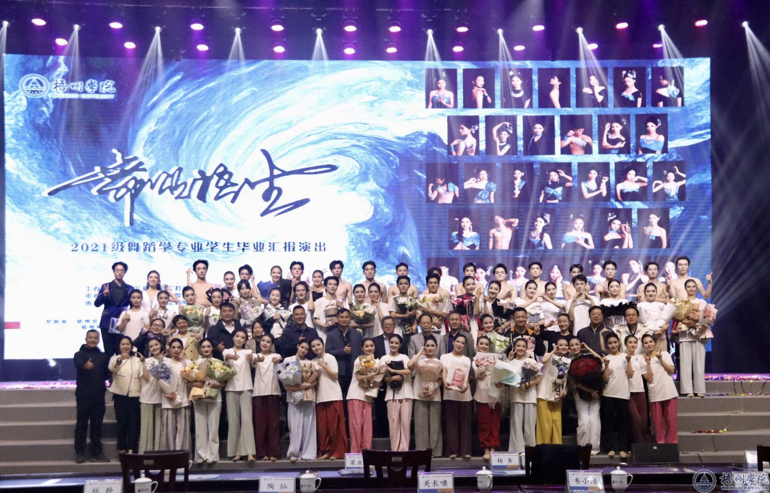 妙舞清歌,舞颂梧生。12月3日晚,教师教育学院在体育馆三楼举办2021级舞蹈学专业“舞颂梧生”毕业汇报演出。校长杨奔,学校党委副书记梁业华,副校长范生汝、覃雄彪出席活动,来自学校各单位、各部门、各二级学院的领导、师生代表,以及社会各界人士观看了演出。