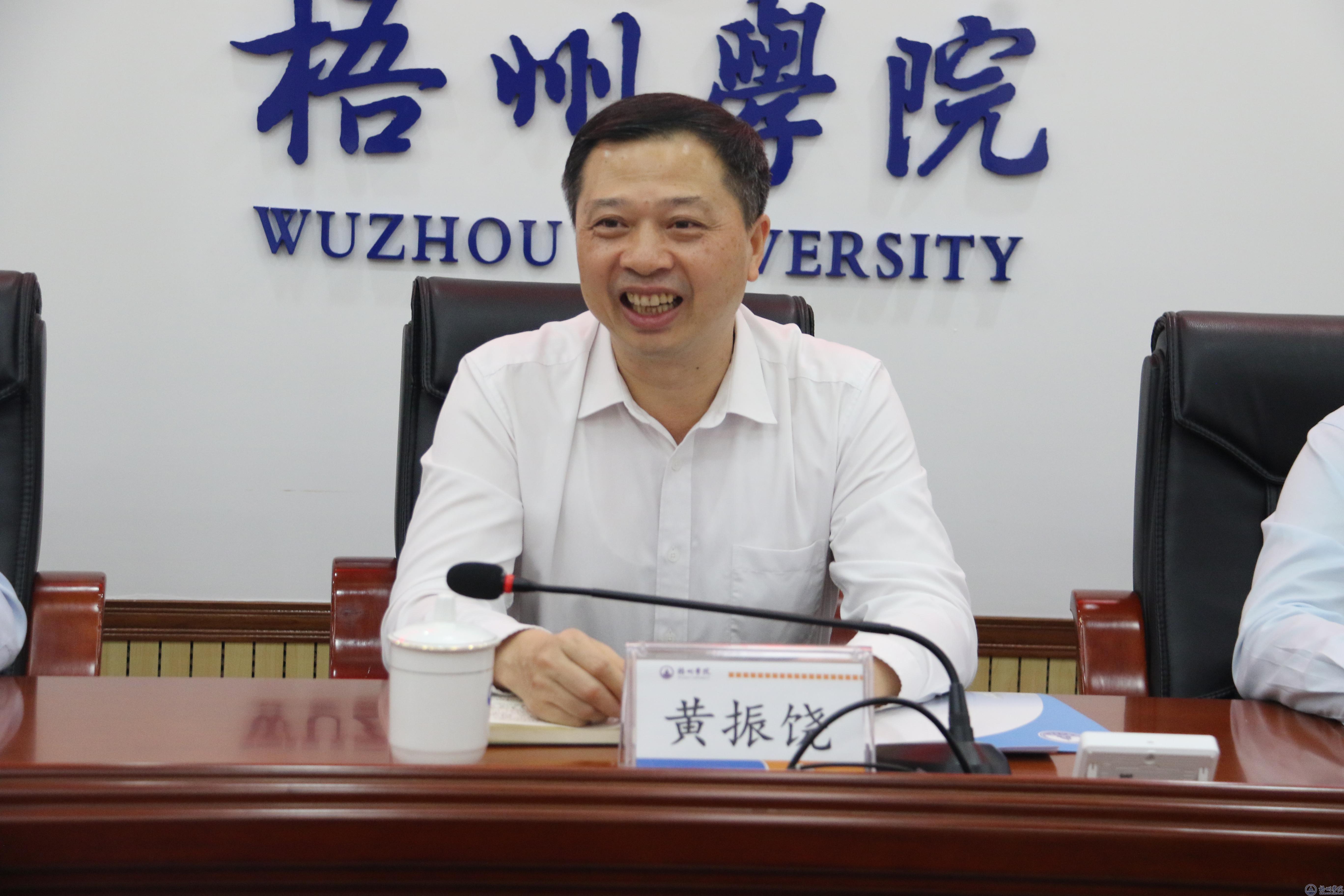 11月8日下午,梧州市政协主席黄振饶一行8人到我校调研。学校党委书记童晓晖、副校长麻新纯接待了黄振饶一行,双方在明理楼八楼第一会议室进行交流座谈。