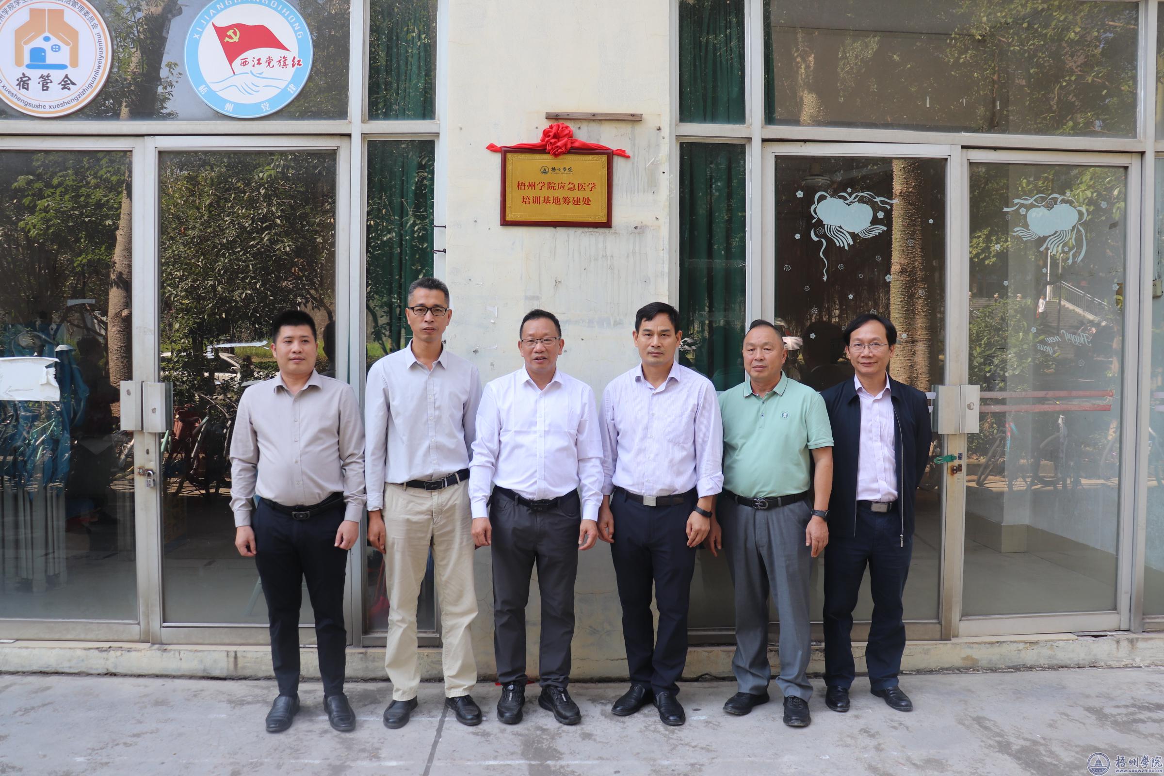 座谈会结束后,参会人员移步至学校综合楼一楼为“梧州学院应急医学培训基地筹建处”举行揭牌仪式。