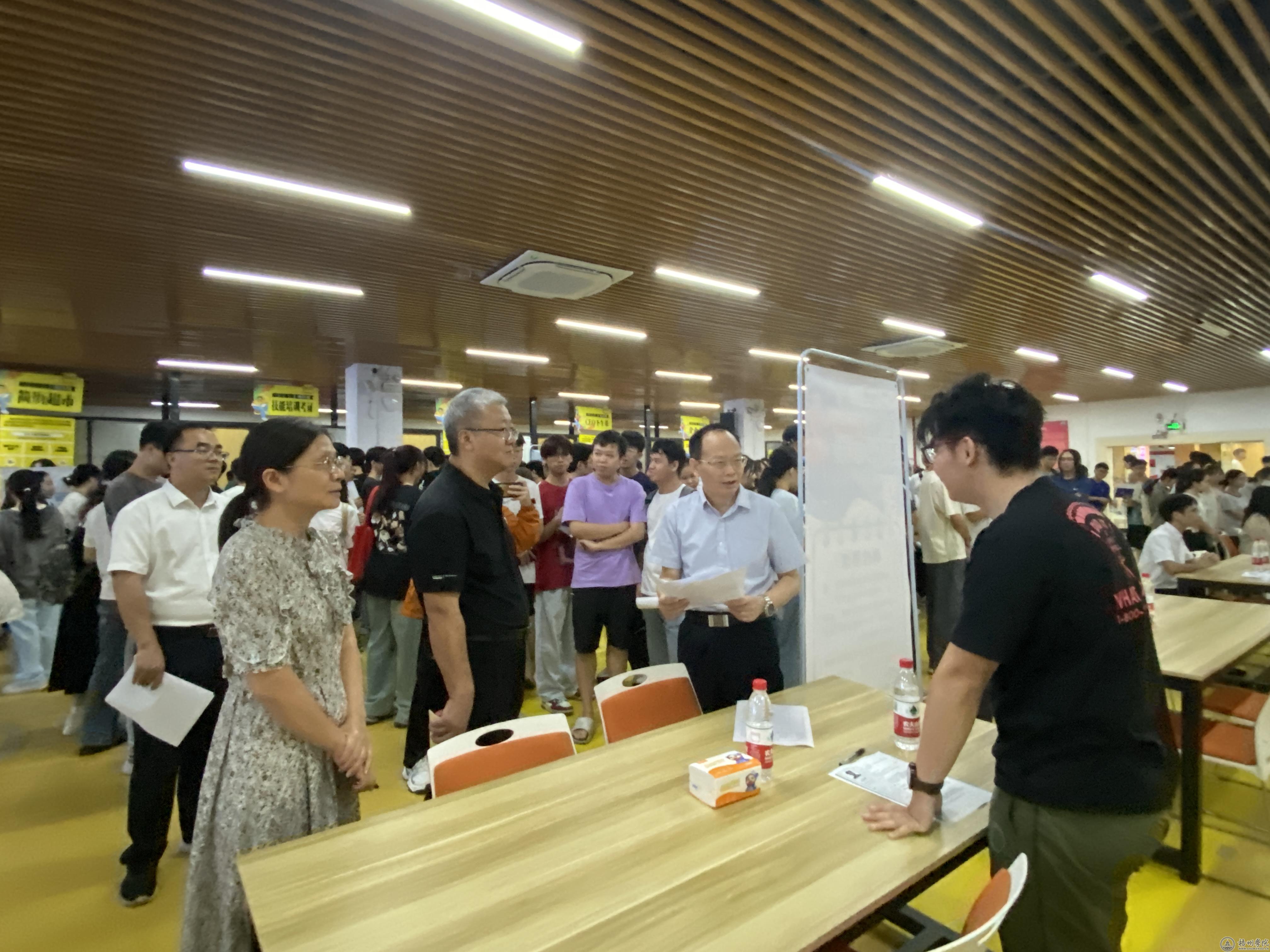 10月9日,电子与信息工程学院、大数据与软件工程学院、学校深圳校友会在体育馆负一楼邑谷中心联合举办2025届毕业生专场招聘会。学校党委副书记梁业华现场指导毕业生就业工作。