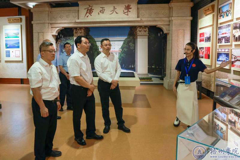 会前,童晓晖、杨奔一行参观了广西大学校史馆和中国—东盟经济学院。