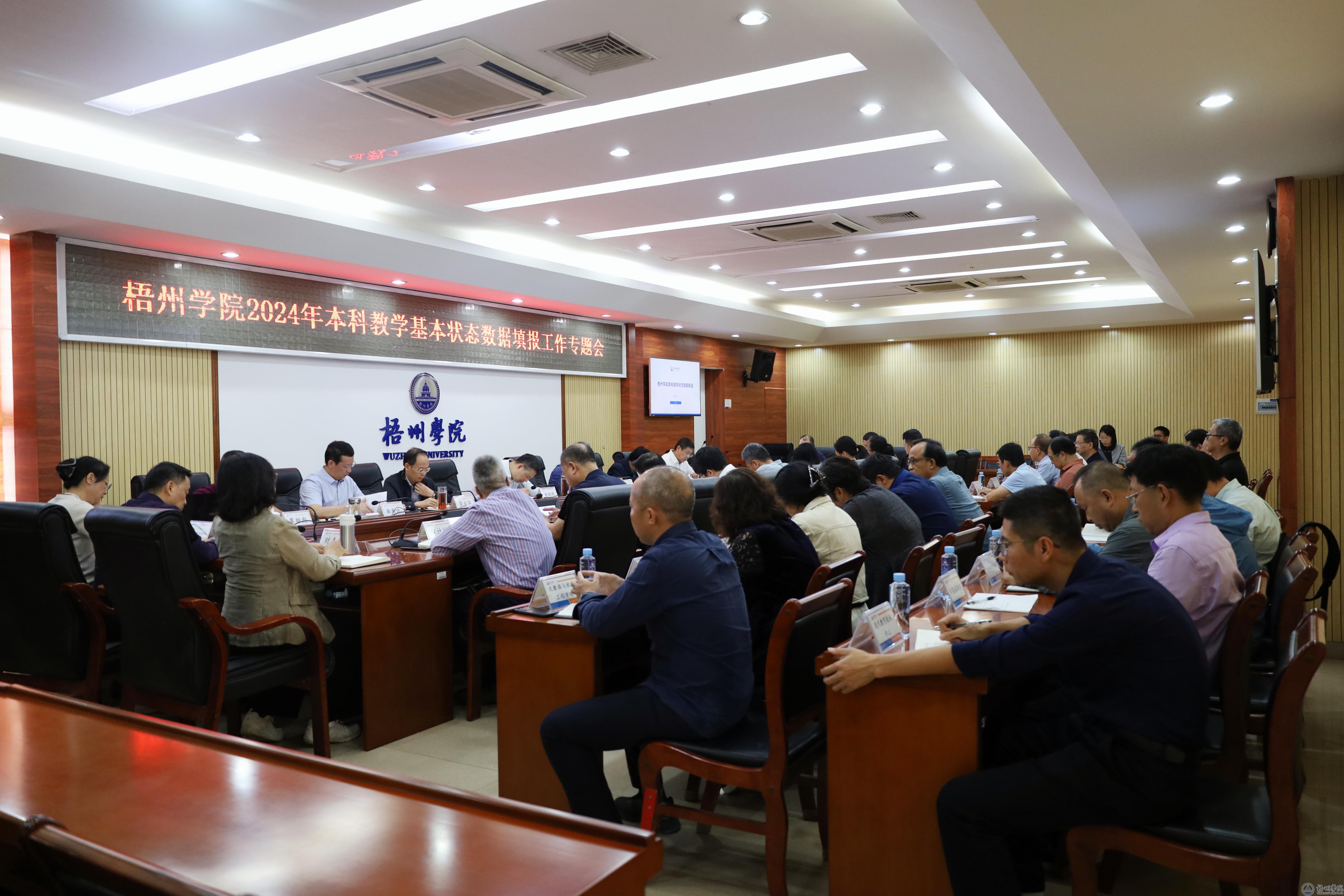 为推进我校本科教育教学审核评估自评自建,完成2024年本科教学基本状态数据采集工作,10月24日下午,学校在明理楼八楼第一会议室召开2024年本科教学基本状态数据填报工作专题会。学校领导童晓晖、杨奔、梁业华、邱房贵、麻新纯、宾月景、覃雄彪出席会议。会议由副校长覃雄彪主持,各职能部门、教辅单位主要负责人、各二级学院院长(主持工作副院长)及教务处相关工作人员参加会议。