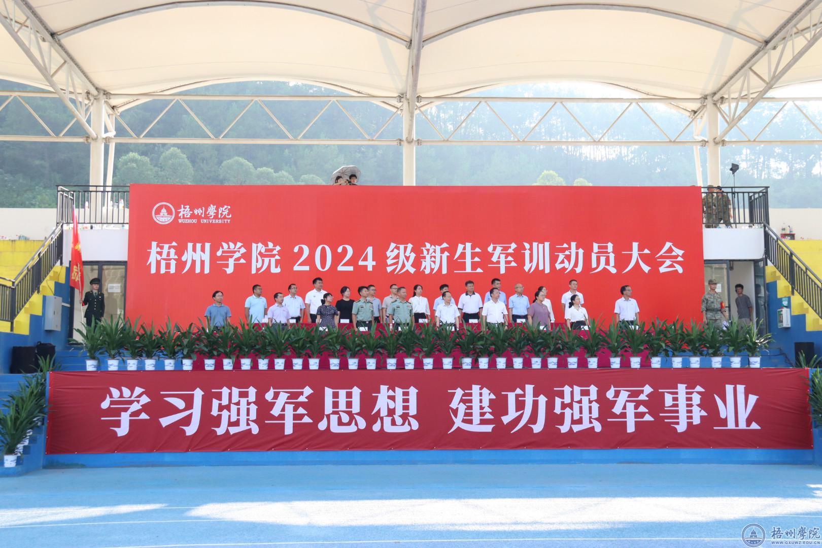 9月14日上午,学校在北校区田径场举行2024级新生军训动员大会。学校党委副书记梁业华,梧州军分区大校、副司令员董永洪,梧州市万秀区人民武装部上校、部长于海明,学校2024级新生军训工作领导小组成员,2024级新生辅导员、班主任及2024级全体参训新生参加大会。