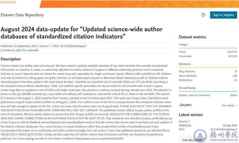 该榜单基于Scopus数据库的引用数据系统分析,依据总引用量、Hirsch H-index、共同作者修正Schreiber Hm-index、单独作者、单独或者第一作者以及单独、第一或者最后作者文章引用量等六种指标进行综合评定,包括了22个领域和174个细分子领域,从全球近700万科学家中,遴选出世界排名前2%的科学家。榜单提供了面向科学家长期科研表现的衡量指标,客观真实反映科学家的学术影响力,此次榜单的更新不仅为科研人员提供了一个权威的评价体系,也为科研机构和资助机构提供了重要的参考依据。