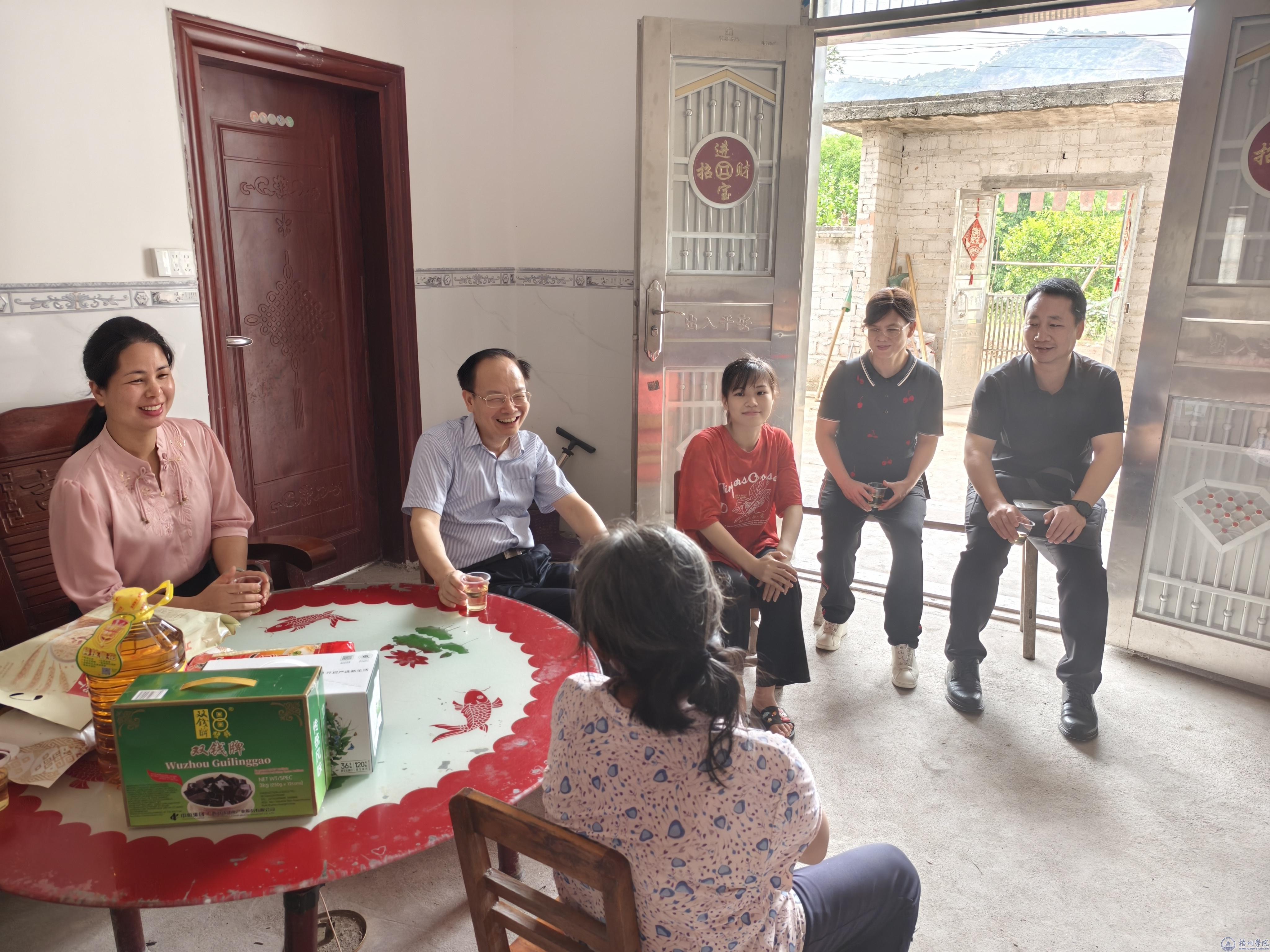 7月26日,学校党委副书记梁业华到梧州市藤县藤州镇、象棋镇入户走访慰问学生代表。
