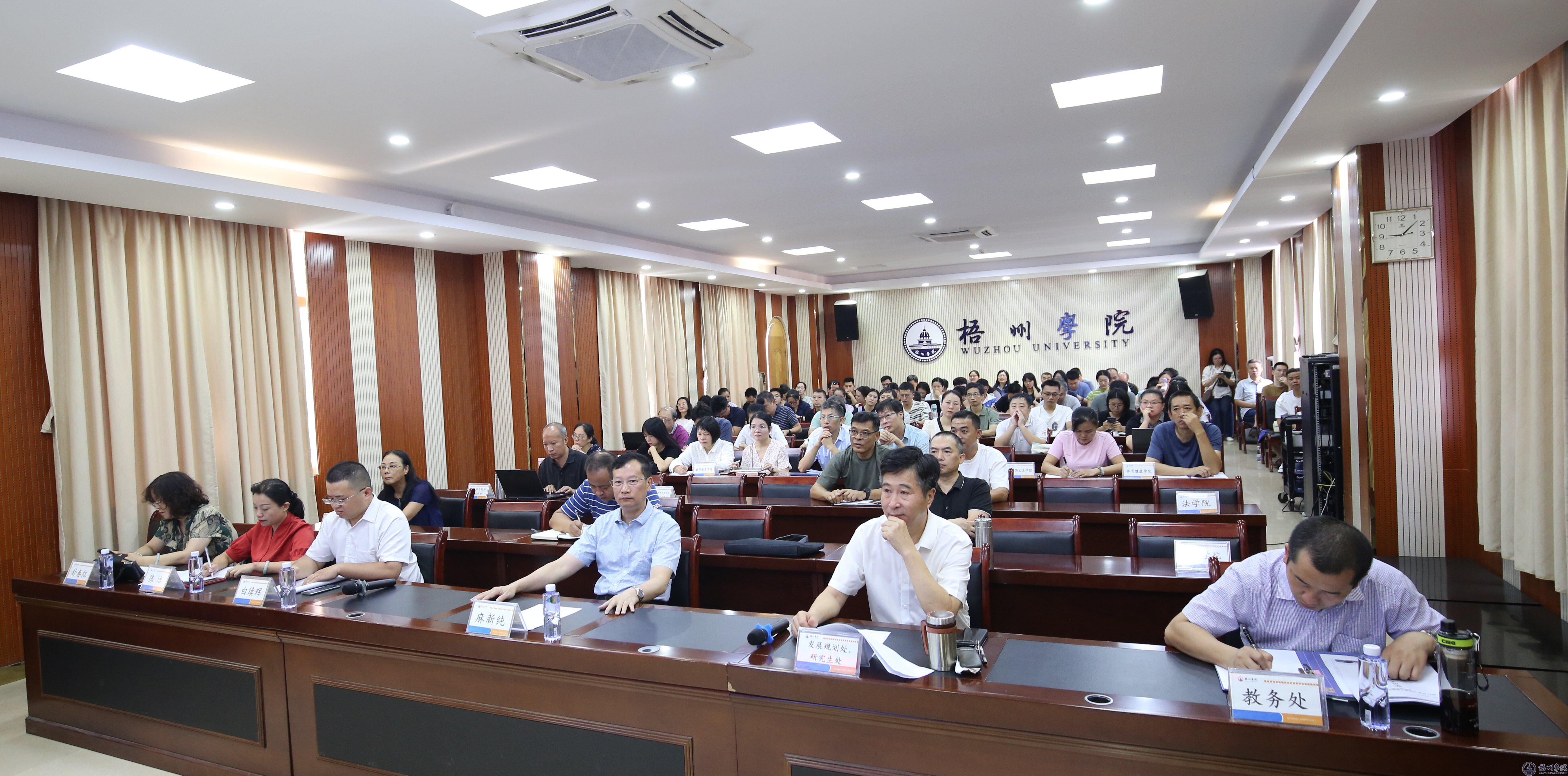 我校在明理楼七楼视频会议室设立分会场。我校粤桂高校交流合作专项工作组负责人、副校长麻新纯出席会议并讲话;二级学院分管教学副院长、教研室主任、一流专业带头人、教师代表;教务处负责人及一流专业建设相关工作人员、发展规划处全体人员参加会议。