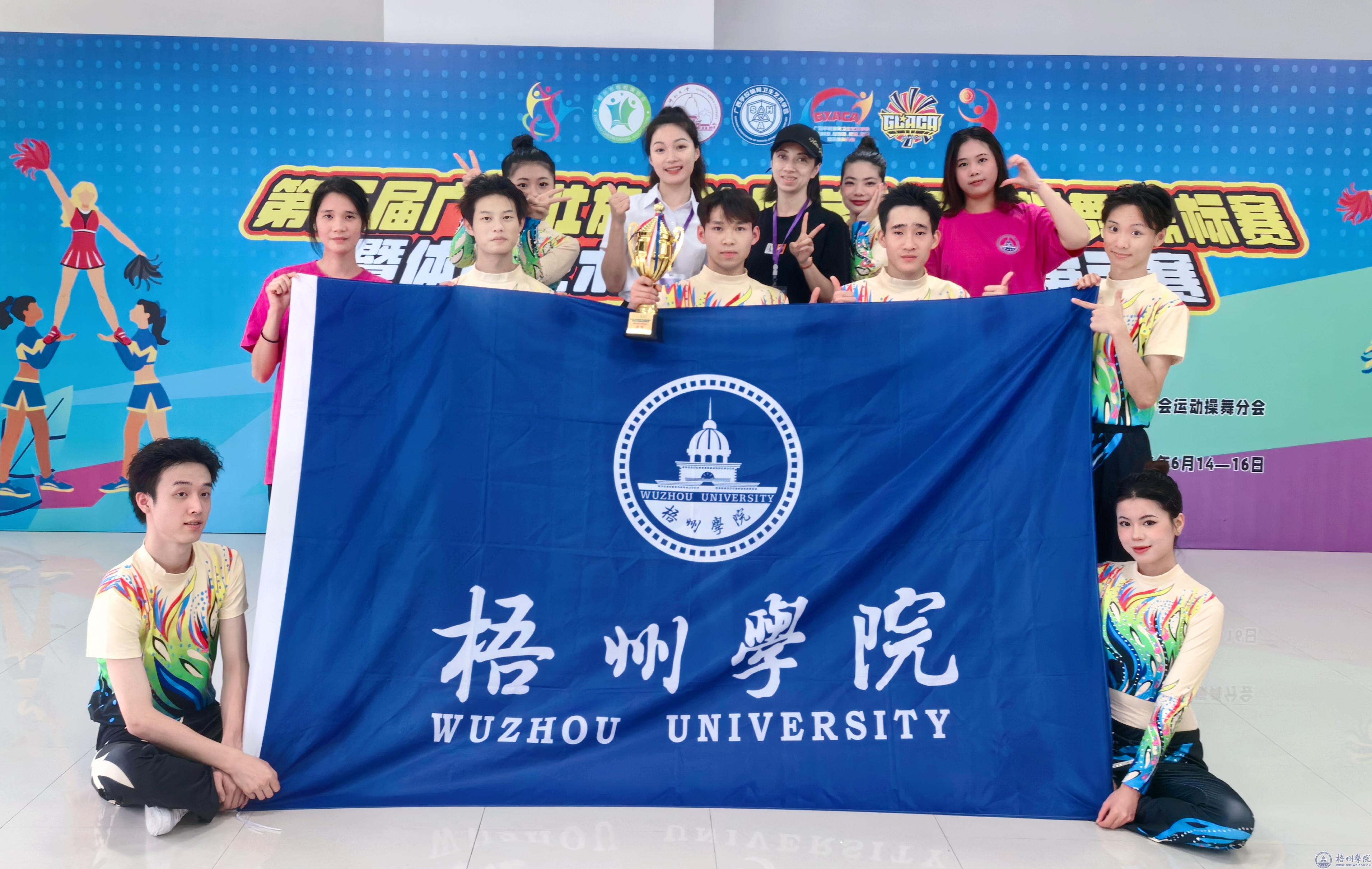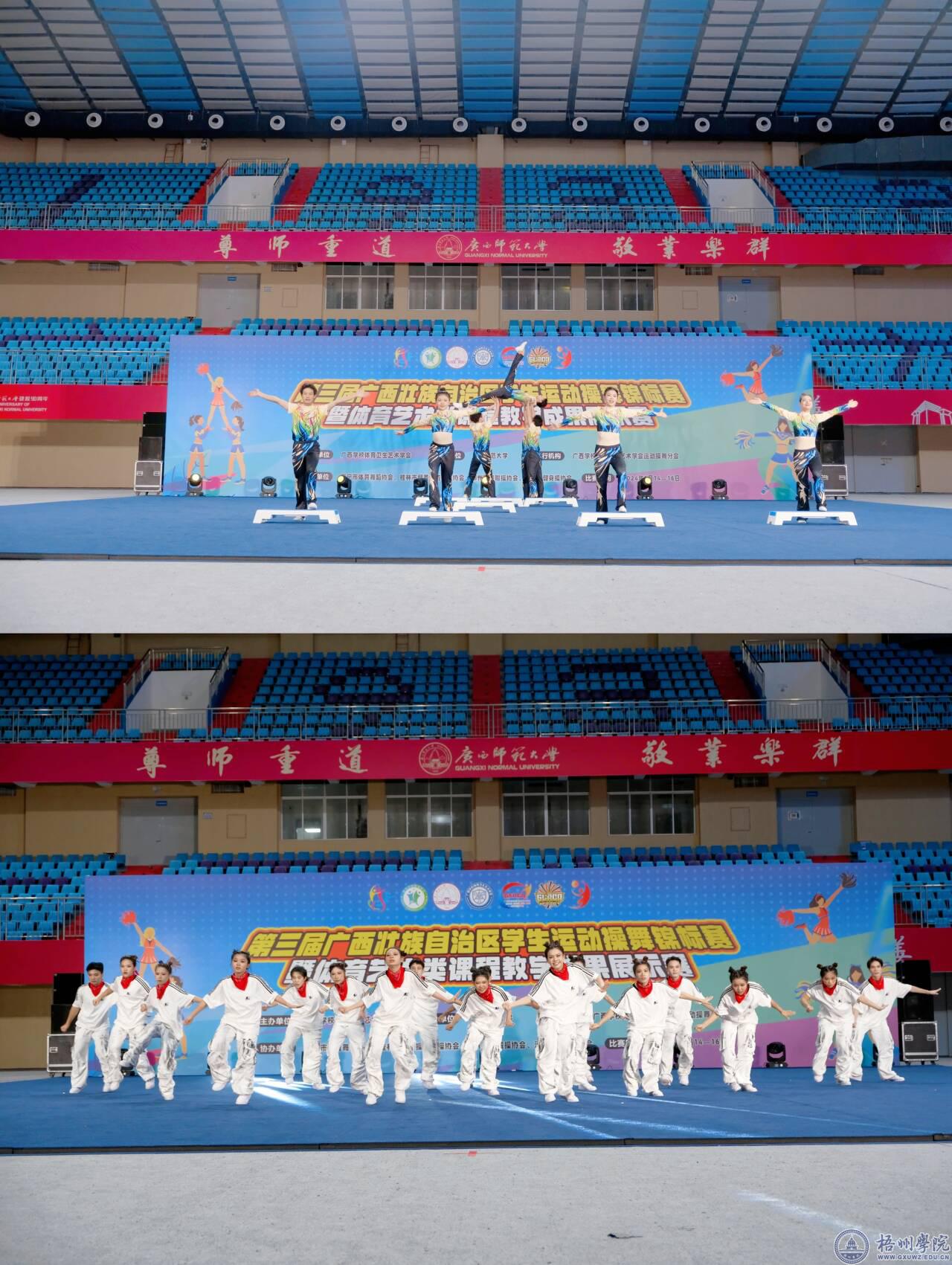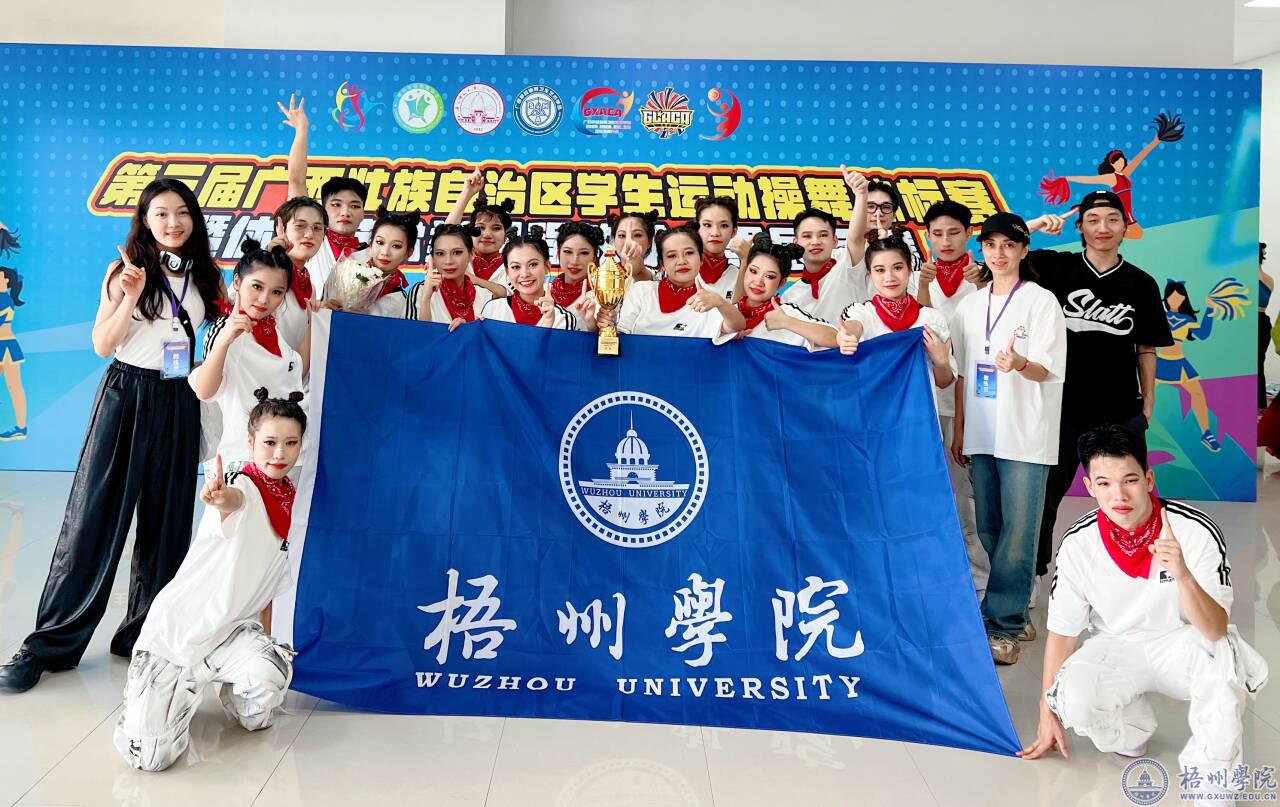 6月14日至16日,由广西学校体育卫生艺术学会主办的第三届广西壮族自治区学生运动操舞锦标赛暨体育艺术类课程教学成果展示赛在广西师范大学(雁山校区)综合体育馆举行。本次赛事有来自广西12个地市的近1900名运动员、教练员和领队参加。我校体育健康学院和学校团委联合组队参加了比赛。经过两天的角逐,我校参赛队获得齐舞和轻器械健身操两个项目的冠军。