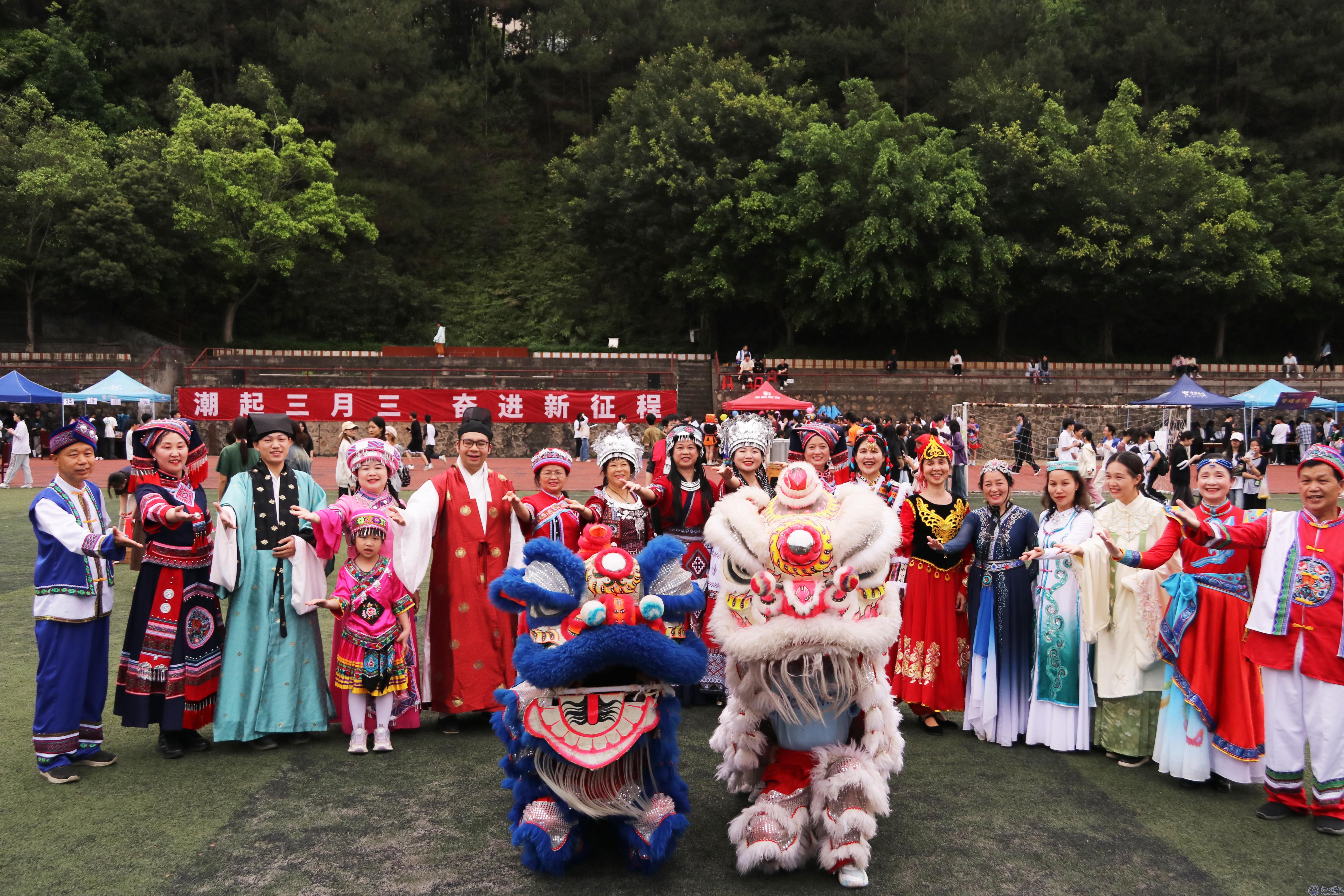 为弘扬民族优秀文化,促进民族团结进步、丰富校园文化活动,进一步引领广大师生铸牢中华民族共同体意识,4月9日下午,学校在主校区田径运动场开展以“潮起三月三 奋进新征程”为主题的民族团结系列活动。本次活动由学校党委统战部、校工会、校团委、体育健康学院以及各二级学院联合举办。学校党委副书记梁业华、副校长麻新纯出席活动并与师生现场互动,学校各民族师生代表参加活动。