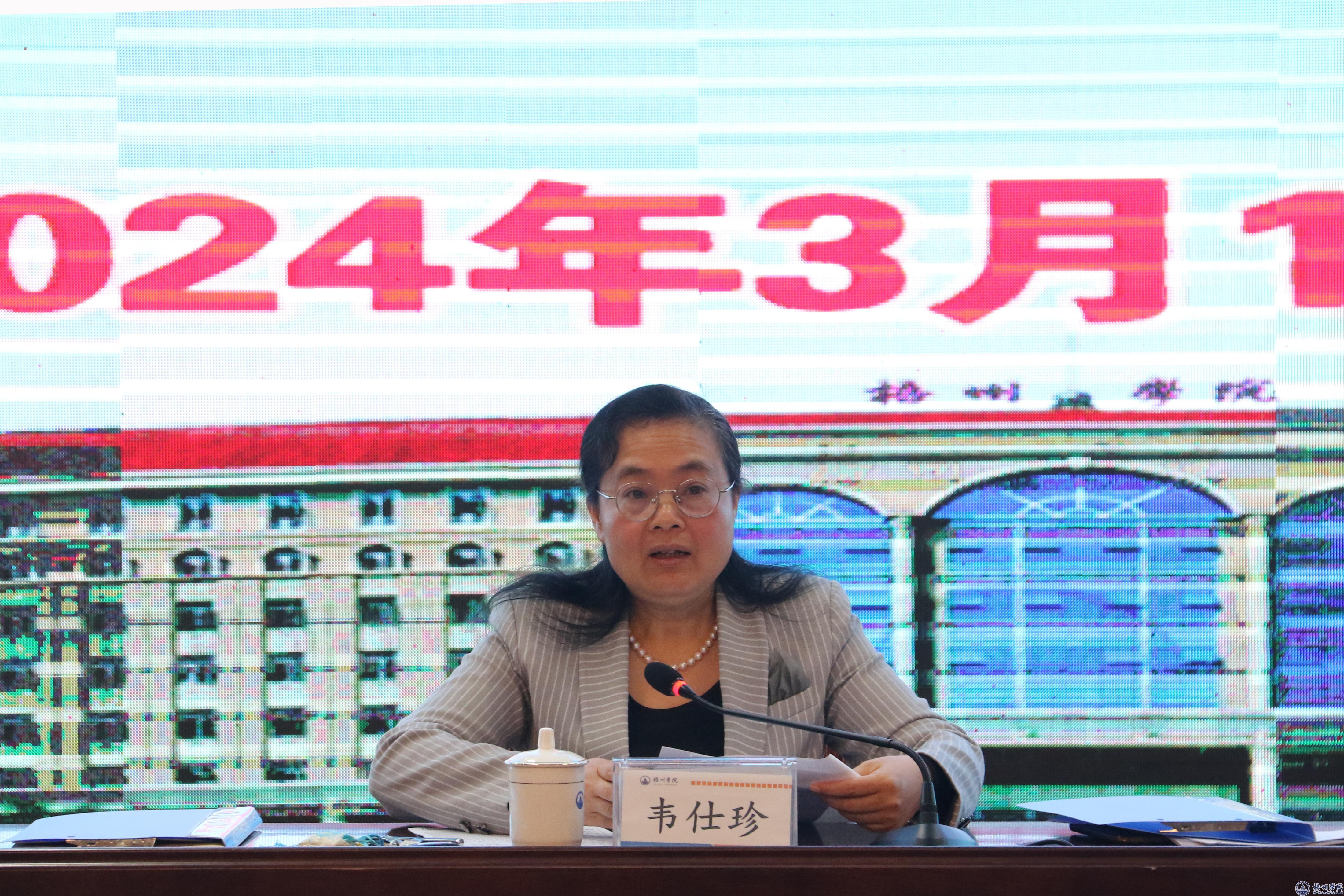 会上,学校党委书记韦仕珍代表领导班子作2023年度工作述职报告和干部选拔任用工作报告。她从强化党委的领导核心地位、政治组织保障更加有力,落实立德树人根本任务、人才培养更加全面,申硕攻坚持续深入、学科布局不断优化,坚持“人才强校”、师资队伍建设持续推进,聚焦服务地方、科学研究和成果转化继续发展,构建开放办学格局、对外交流与合作取得进展,深化综合改革、提升管理服务效能,建设平安和谐校园、校园文化蓬勃发展等八个方面对班子2023年度的工作进行了全面回顾和系统总结。并向与会同志报告了学校2023年选人用人工作基本情况、主要做法和下一步工作措施。