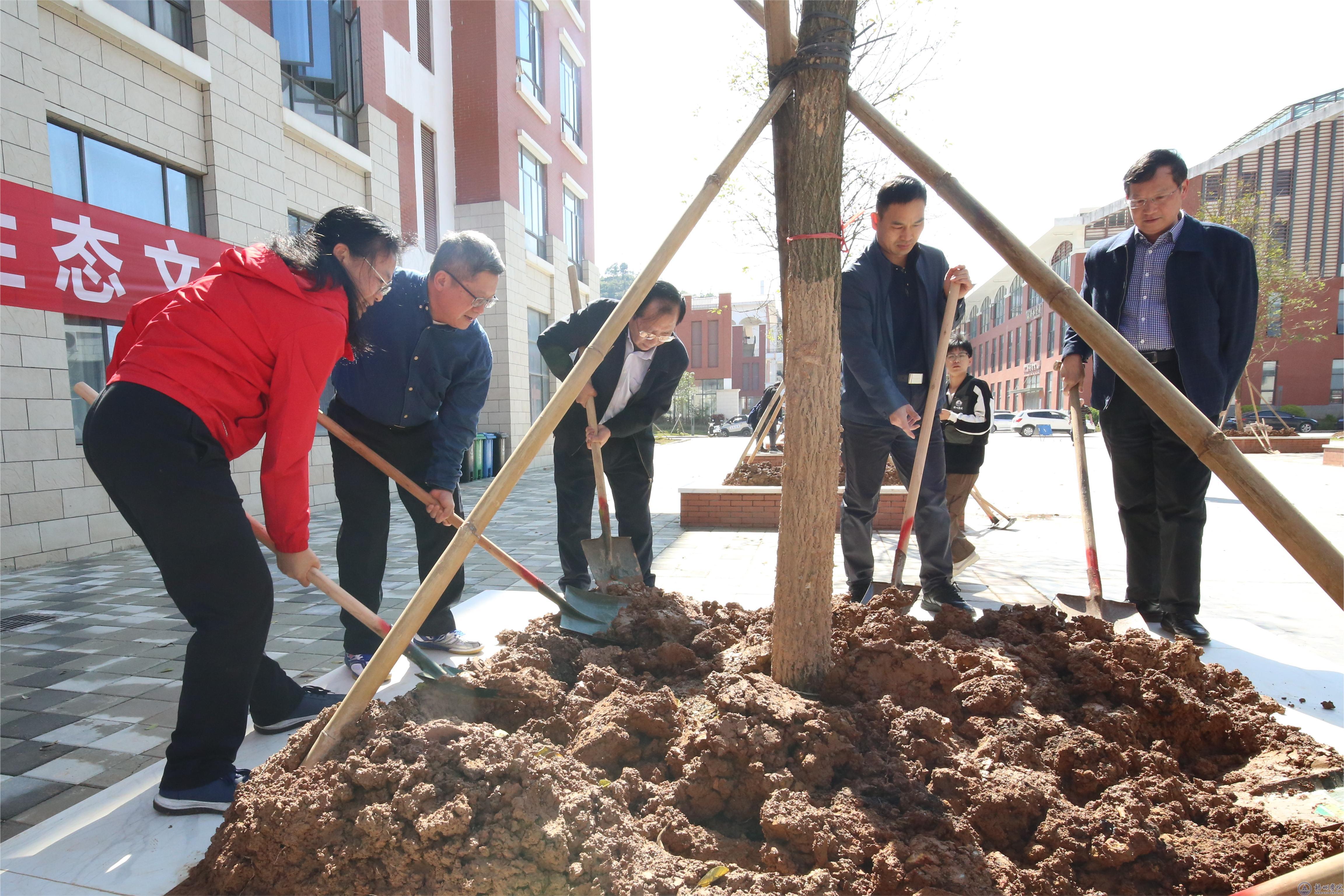在植树活动现场,悬挂着“义务植树共建绿色和谐校园”“开展义务植树,建设生态文明”的横幅,学校领导和师生们一起植树,挖坑、栽树、填土、浇水、覆土,每一个环节都有序分工,配合默契。在大家的通力合作下,共种植树木75棵,其中桂花树56棵,黄花风铃树19棵,一棵棵新栽种的树木在三月暖阳的照耀下,矗立在校园,向阳而生。