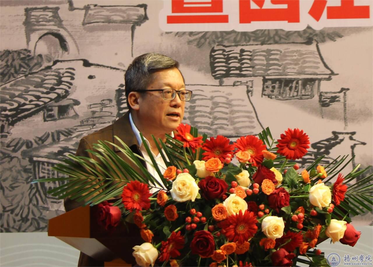 活动伊始,杨奔校长以《存岭表文脉 振木铎之声》为题作主旨发言。发言中介绍了西江流域民间文献研究中心十年发展与服务社会的概况。他对梧州市社科联提供重要支持,苍梧县文物管理所、岑溪市文物管理所毫不吝惜地提供宝贵馆藏表示感谢。他指出,《汇编》的出版是西江流域民间文献研究中心工作的里程碑,通过《汇编》的编纂与出版锻炼了我们的科研队伍,盘活了我们的科研思路,填补了梧州及周边地区民间文书研究的空白,也为梧州各社科单位提供了再创作的思路。