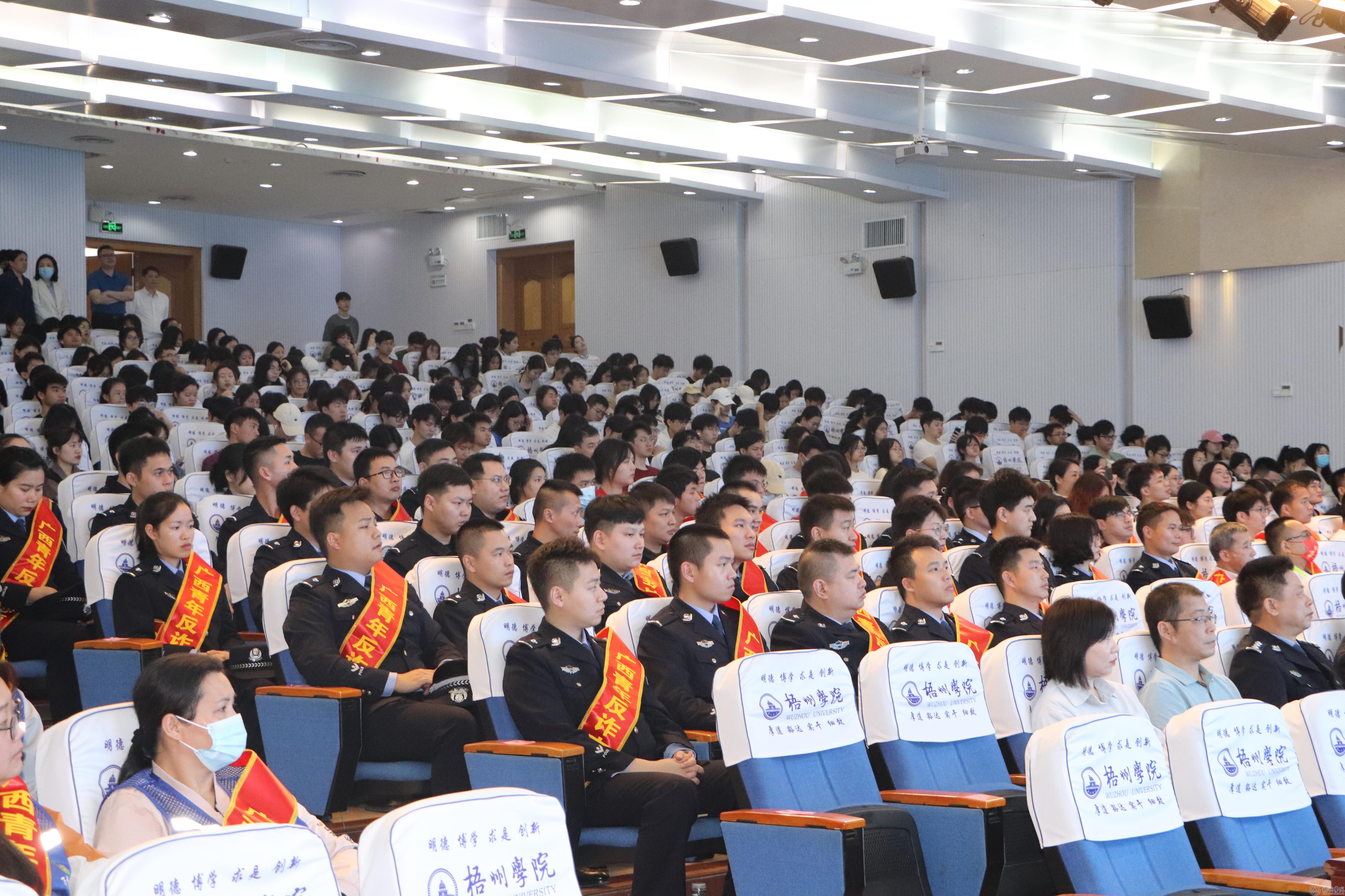 梁业华副书记在致辞中表示,学校将持续联合、配合好梧州市的各行业各单位做好反诈工作,坚持把校园作为反诈宣传教育的重要阵地之一;全校师生坚持以教育为主,预防为先,深入宣传、普及反诈防诈知识,营造全民反诈的浓厚氛围。
