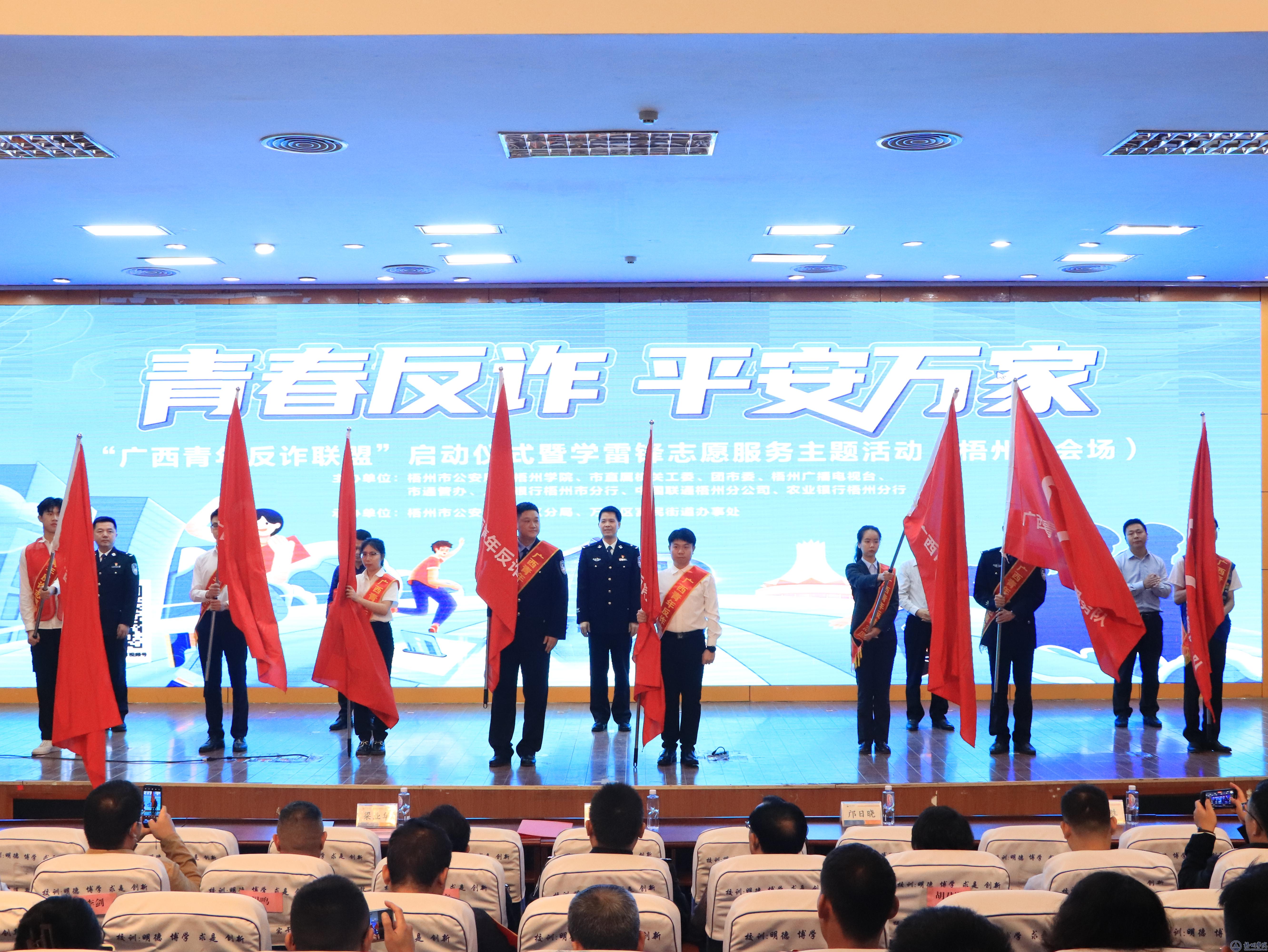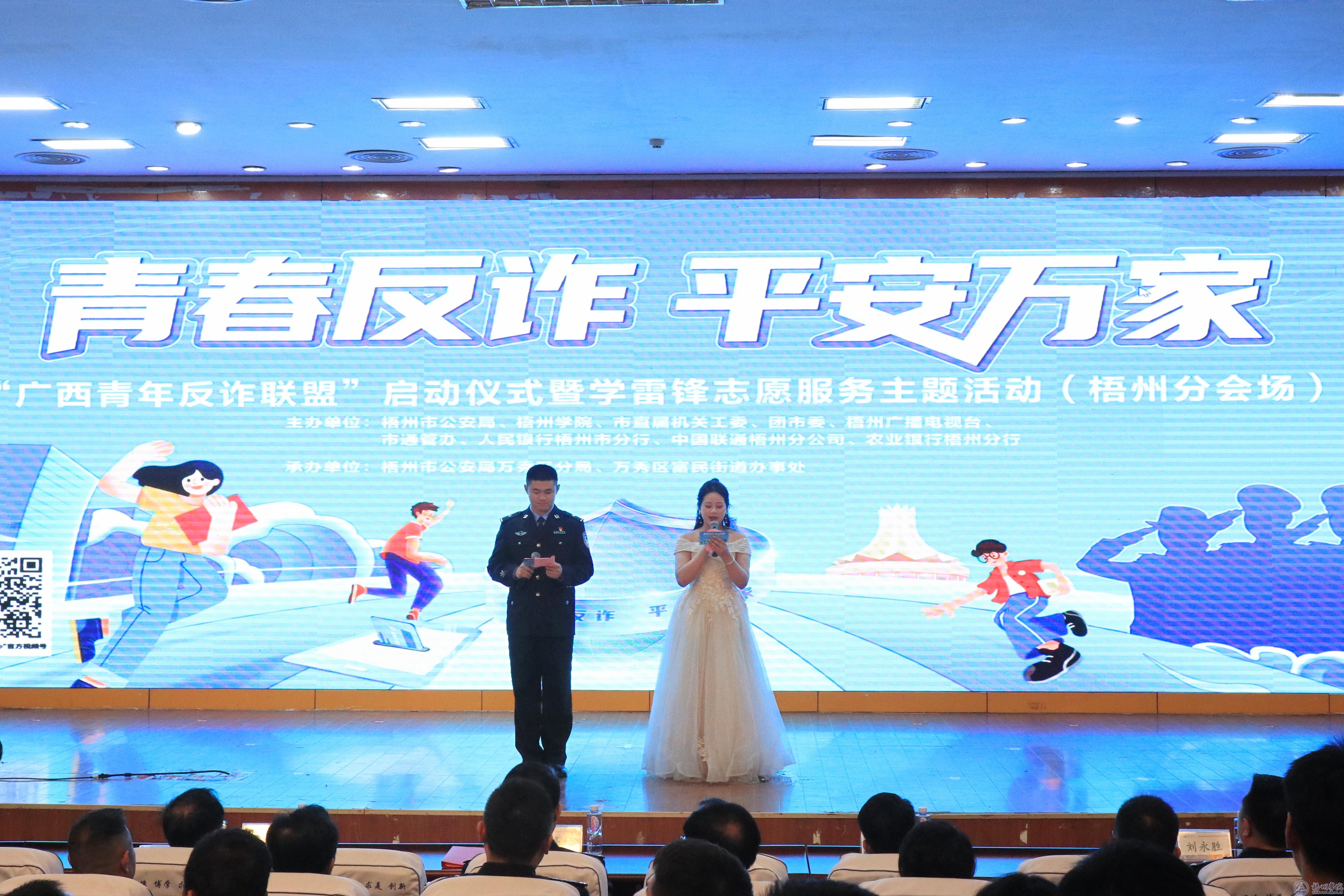 本次活动由梧州市公安局、梧州学院、梧州市直属机关工委、团市委、梧州广播电视台、梧州市通管办、人民银行梧州市分行、中国联通梧州分公司、农业银行梧州分行主办,梧州市公安局万秀区分局、万秀区富民街道办事处富民社区委员会承办。有关单位负责同志,公安、教育、通信、金融等各相关部门的青年反诈志愿者代表共1200余人参加了活动。