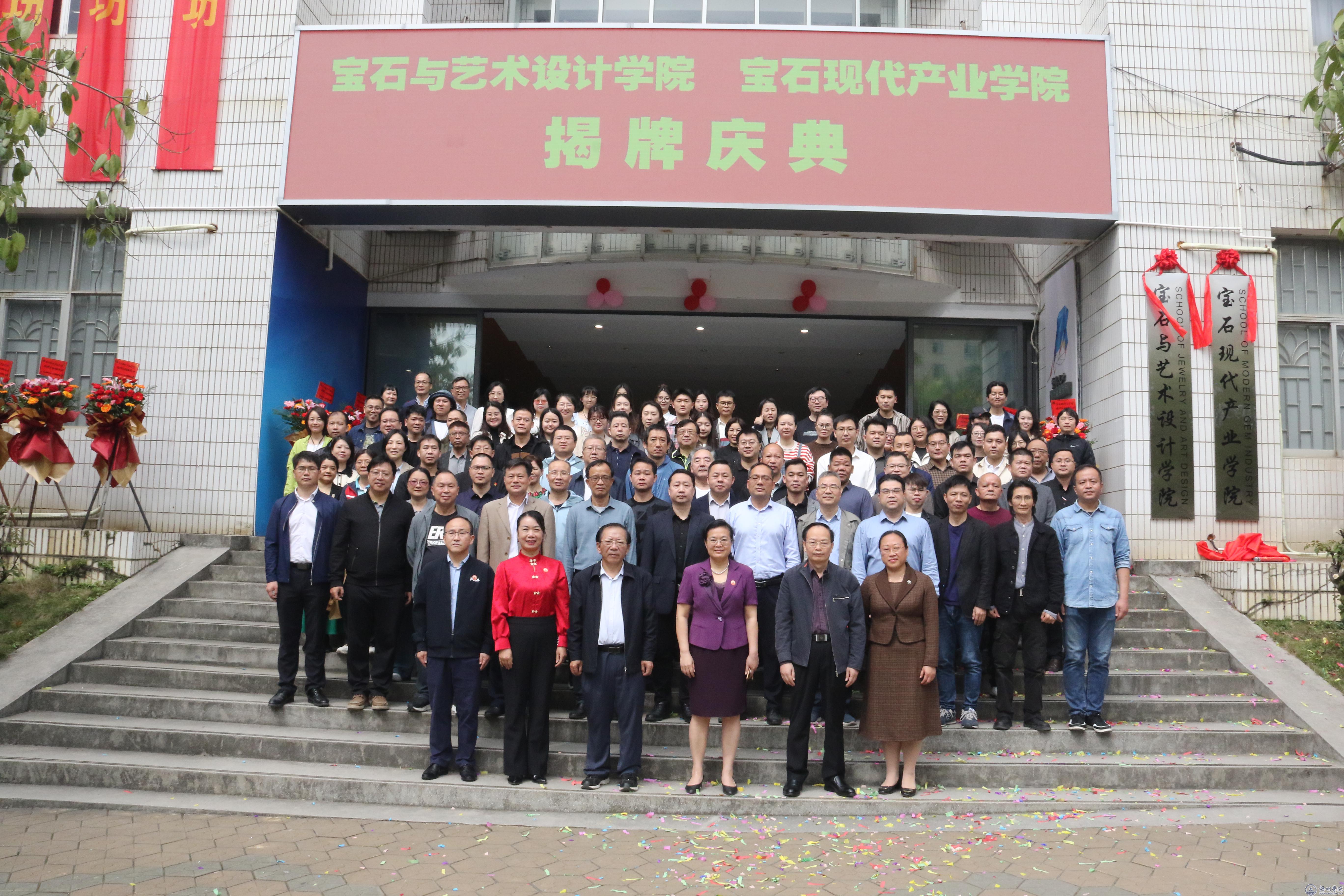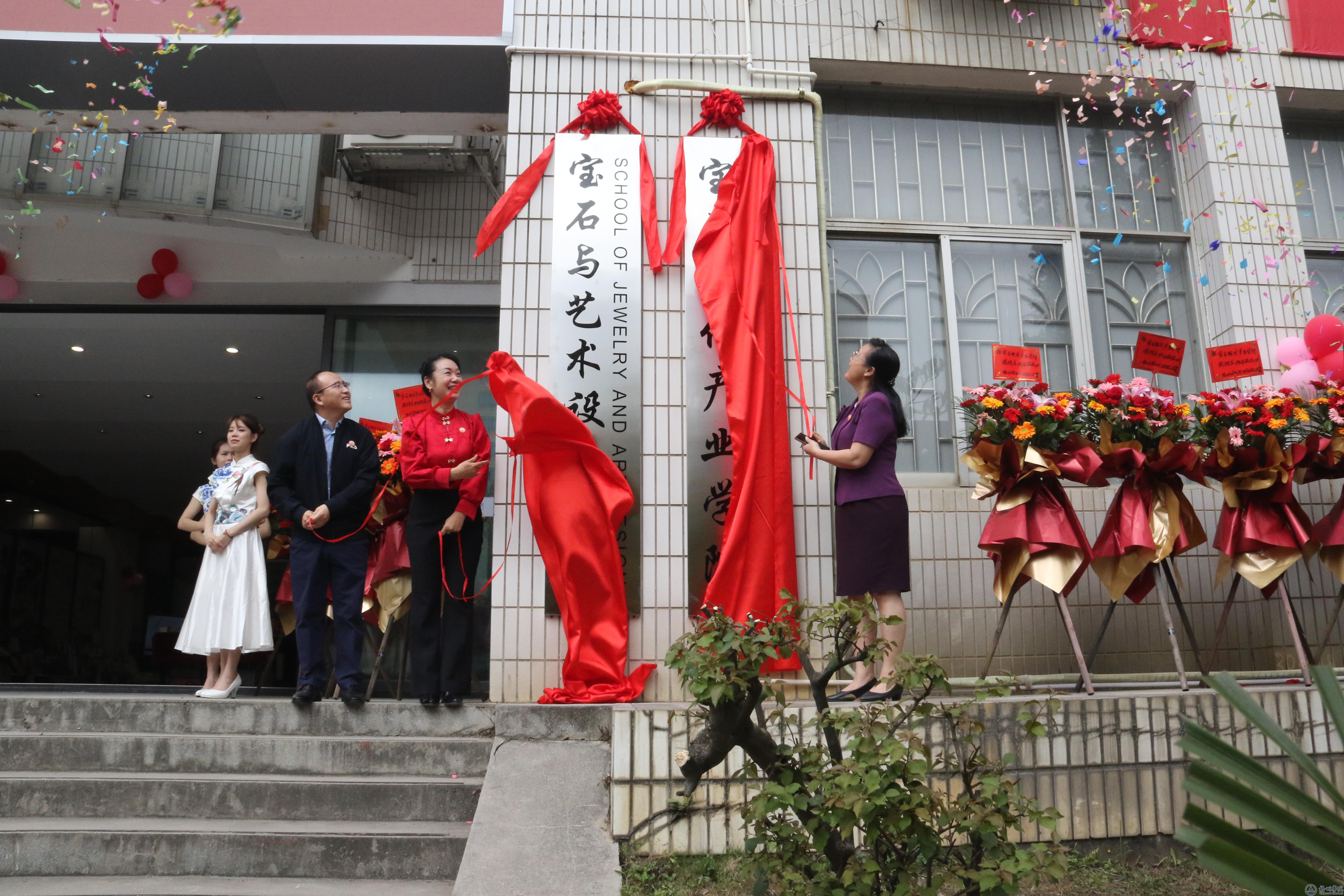 3月26日上午,宝石与艺术设计学院、宝石现代产业学院在学校实验楼多功能展厅举行办公教学新址启用揭牌仪式。学校党委书记韦仕珍、党委副书记梁业华、副校长邱房贵出席揭牌仪式。揭牌仪式由宝艺学院党委书记钟海明主持。