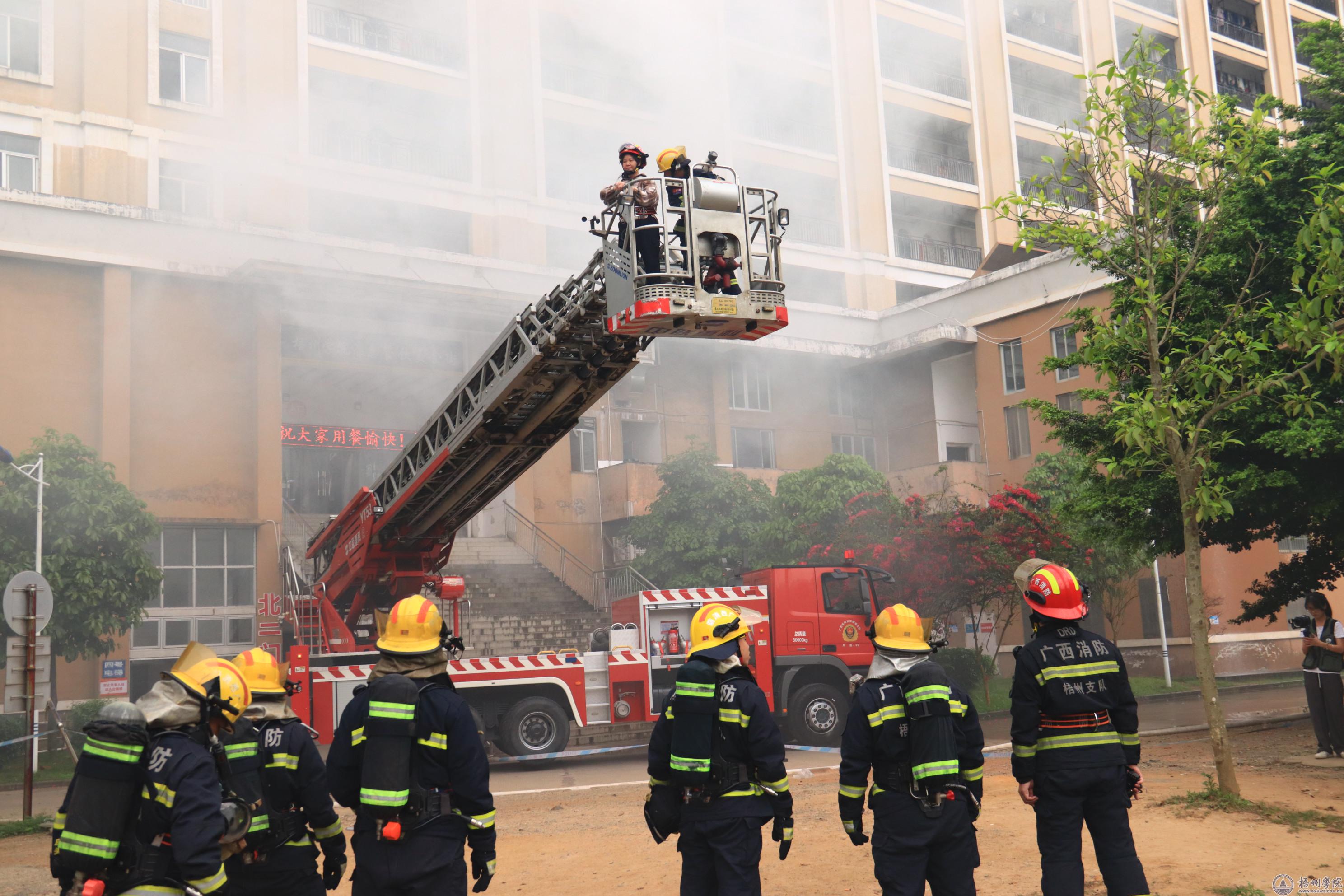 为进一步增强梧州学院师生消防安全意识,提高消防应急反应能力和自救、互救、逃生能力,3月29日下午,由我校主办、万秀区消防大队协办的2024年高层建筑消防疏散灭火救援联合演练在A11学生宿舍楼举行。