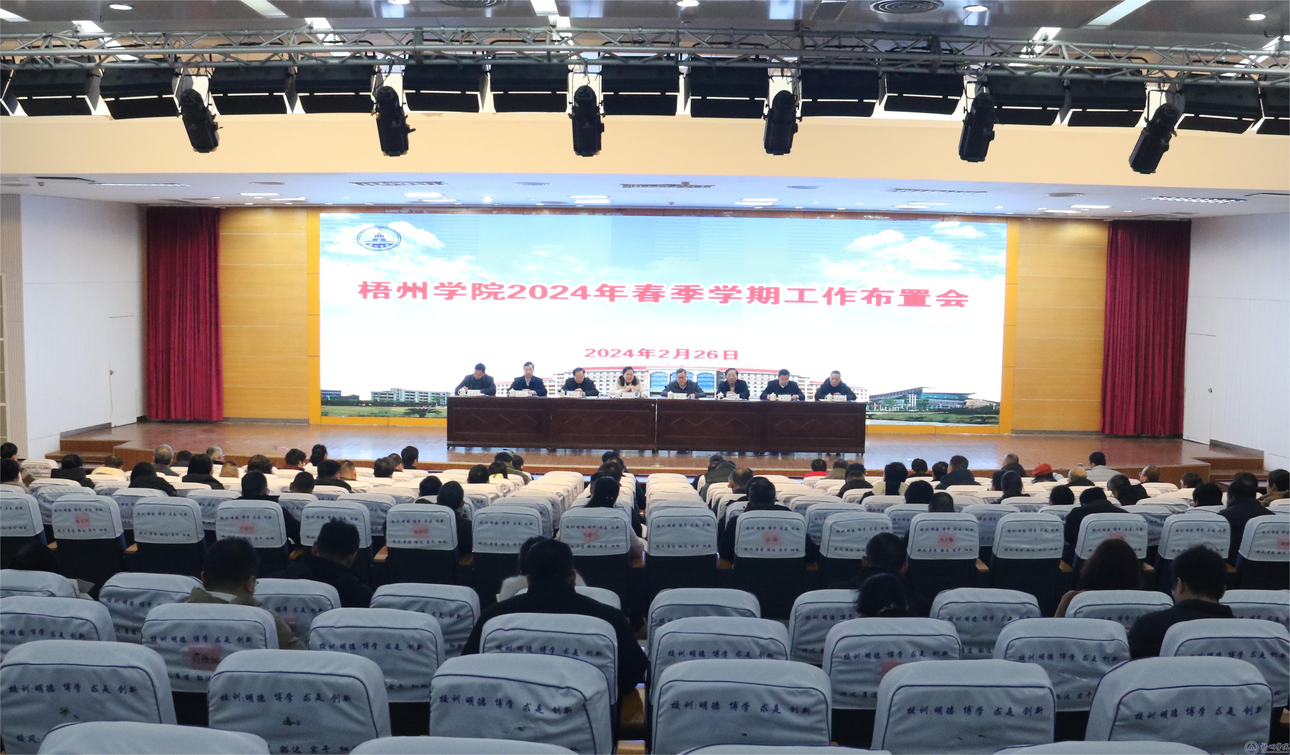 2月26日下午,学校在明理楼学术报告厅召开2024年春季学期工作布置会,学习国家、自治区有关文件、会议精神,部署2024年的重点工作,动员和激发全校干部教职员工开学就要开干,开干就要干成,以饱满的工作热情和积极的工作心态,迎接2024年新挑战、新任务。学校领导韦仕珍、杨奔、梁业华、邱房贵、麻新纯、宾月景、范生汝、覃雄彪出席会议,全体中层干部、全体科级干部参加会议,会议由校党委书记韦仕珍主持。