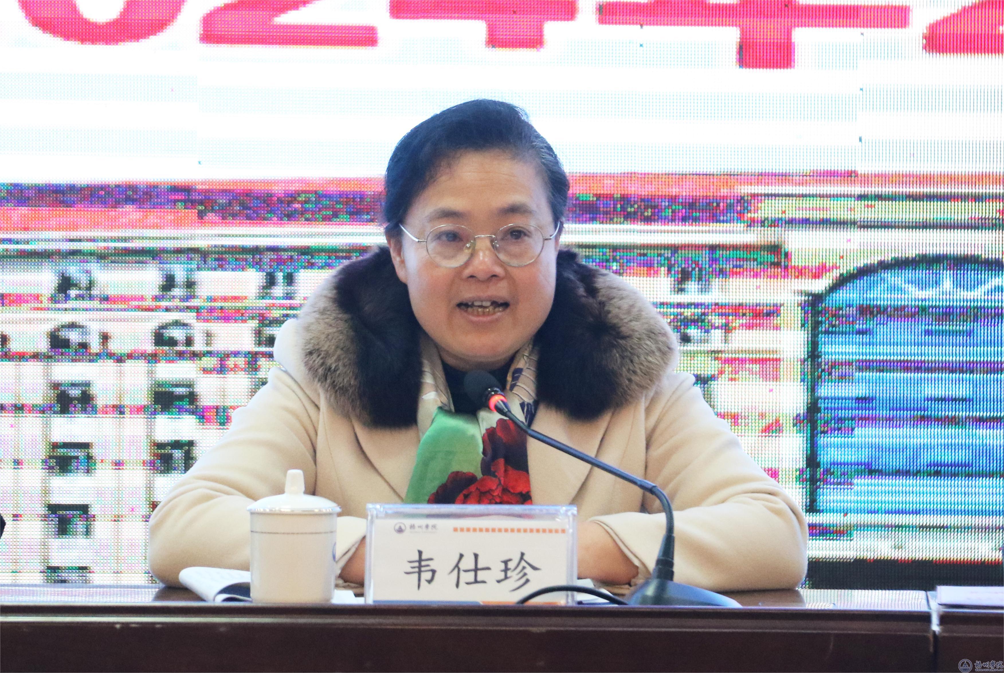 韦仕珍在主持讲话中指出,新的一年,我们要凝心聚力,大力加强党的建设,持续推进党员干部队伍建设,各单位各部门一把手要对新配备的干部进行业务水平、政治理论等素质的培养,不断提升干部履职尽责能力水平,不断激发干部干事创业的活力和动力;要精准科学谋划学校各项工作,确保开好局、起好步、谋好篇。她说道,高校之间的比拼,靠的是实力说话,要对标其他兄弟高校的成绩,列出清单、补齐短板。对此,发展规划处要继续跟进申硕工作进展;要尽快启动2025年学校本科教育教学审核评估准备工作,教务处要列出评估具体指标和责任清单,尽早谋划尽早部署;精细谋划财务工作,外争资源、内强管理,迎变局、谋破局、开新局,为学校高质量发展提供更坚实的财力保障;强化实干实绩实效导向,持续推进绩效工资改革,充分调动广大教职工的工作积极性;深入落实“银龄计划”,健全工作机制,激发银龄教师的科研动能,在教学指导、课题研究、团队建设等方面发挥银龄教师专业优势;通过机构改革、购买服务的方式,进一步推进校园后勤服务社会化,优化资源配置,实现学校后勤管理创新及持续发展。
