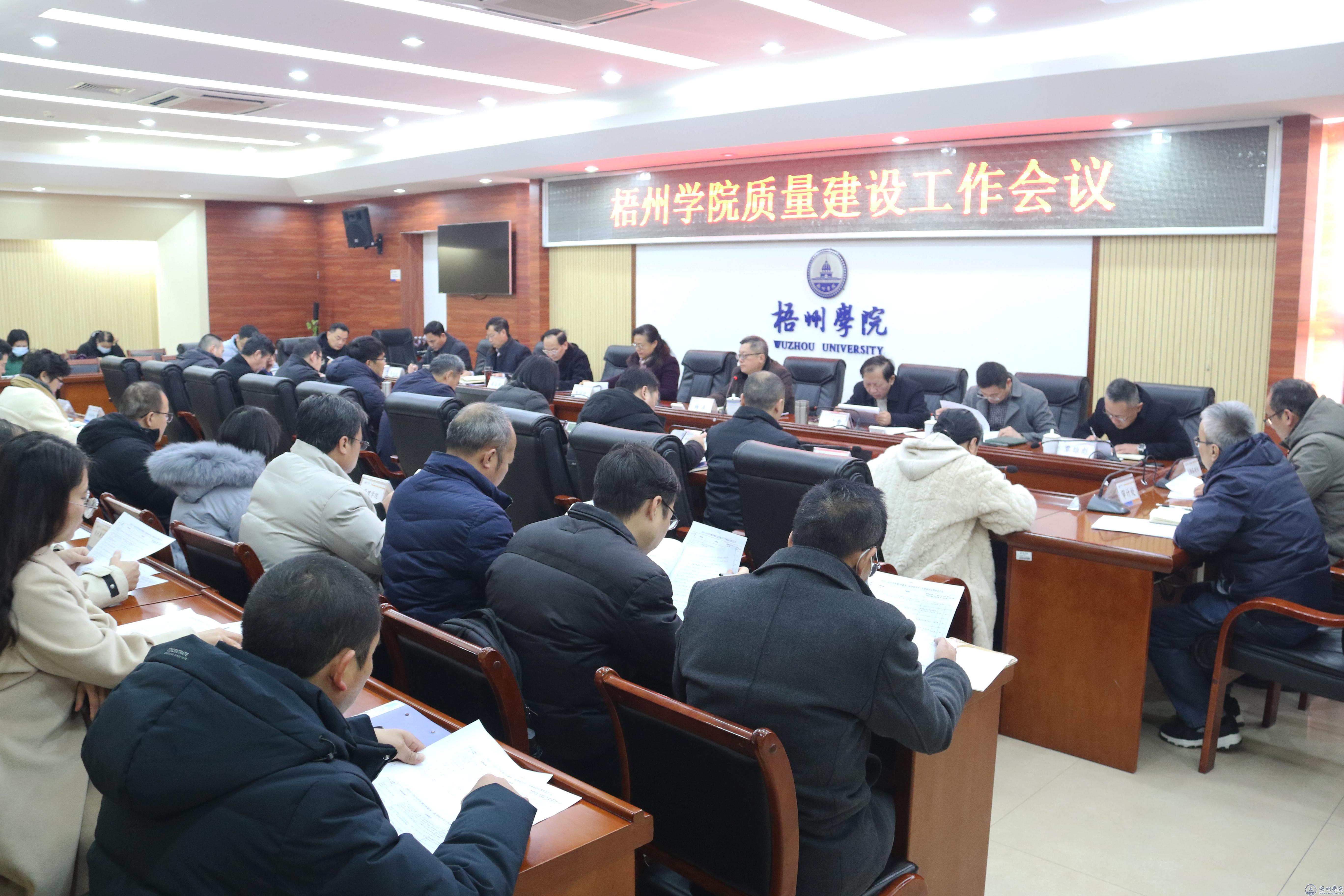 2月28日,学校在明理楼八楼第一会议室召开质量建设工作会议,学校领导韦仕珍、杨奔、梁业华、邱房贵、麻新纯、宾月景、范生汝、覃雄彪出席会议,学校办公室、组织部、宣传部、学工部(处)、人事处、发展规划处、教务处、科研处、后勤基建处、现教中心主要负责人,各二级学院负责人,开学首课堂听课组成员参加会议。会议由校长杨奔主持。