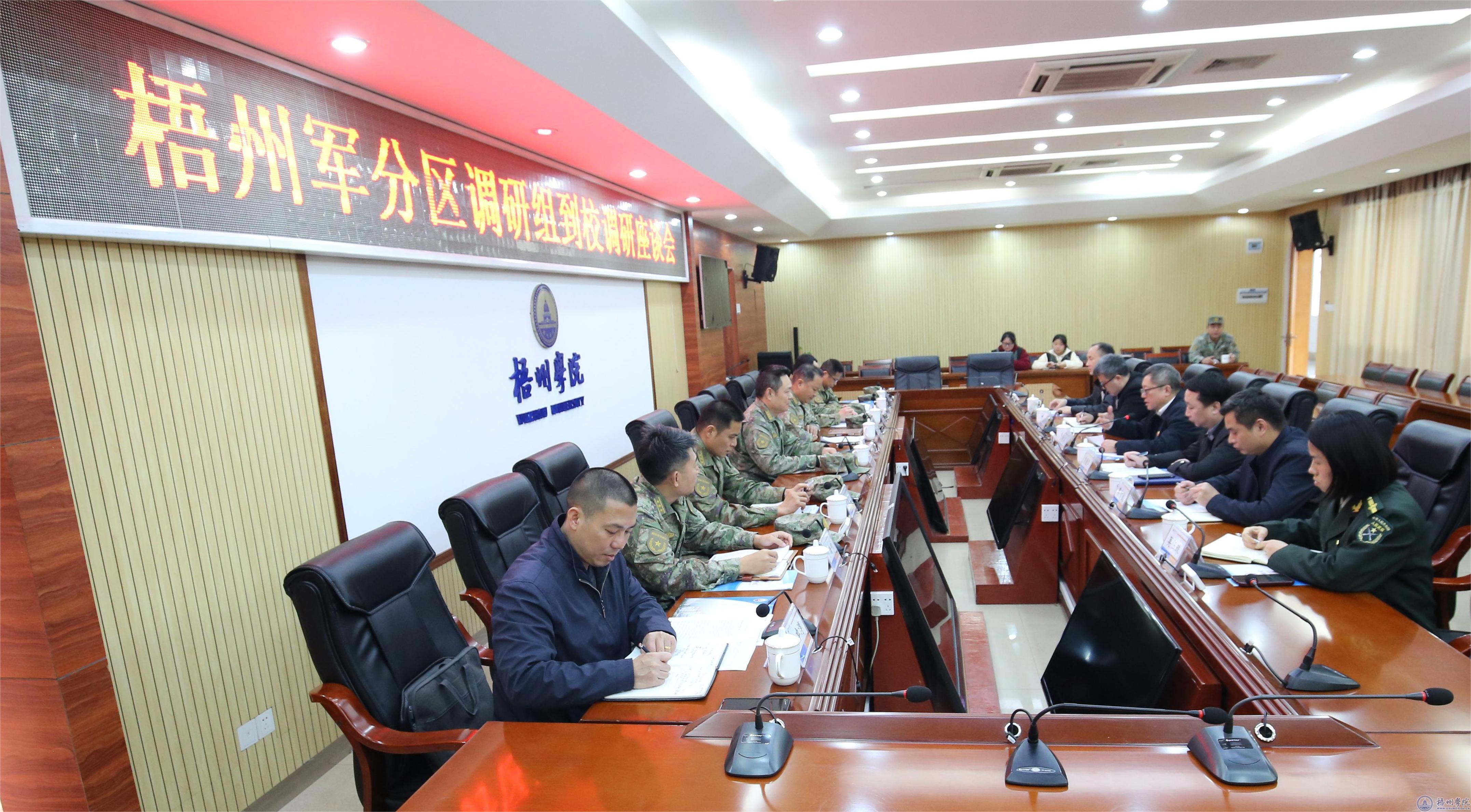 3月7日下午,梧州军分区大校司令员茹雷、大校副司令员董永洪一行到我校调研,学校校长杨奔热情接待了茹雷、董永洪一行,并在明理楼八楼第一会议室进行座谈交流。
