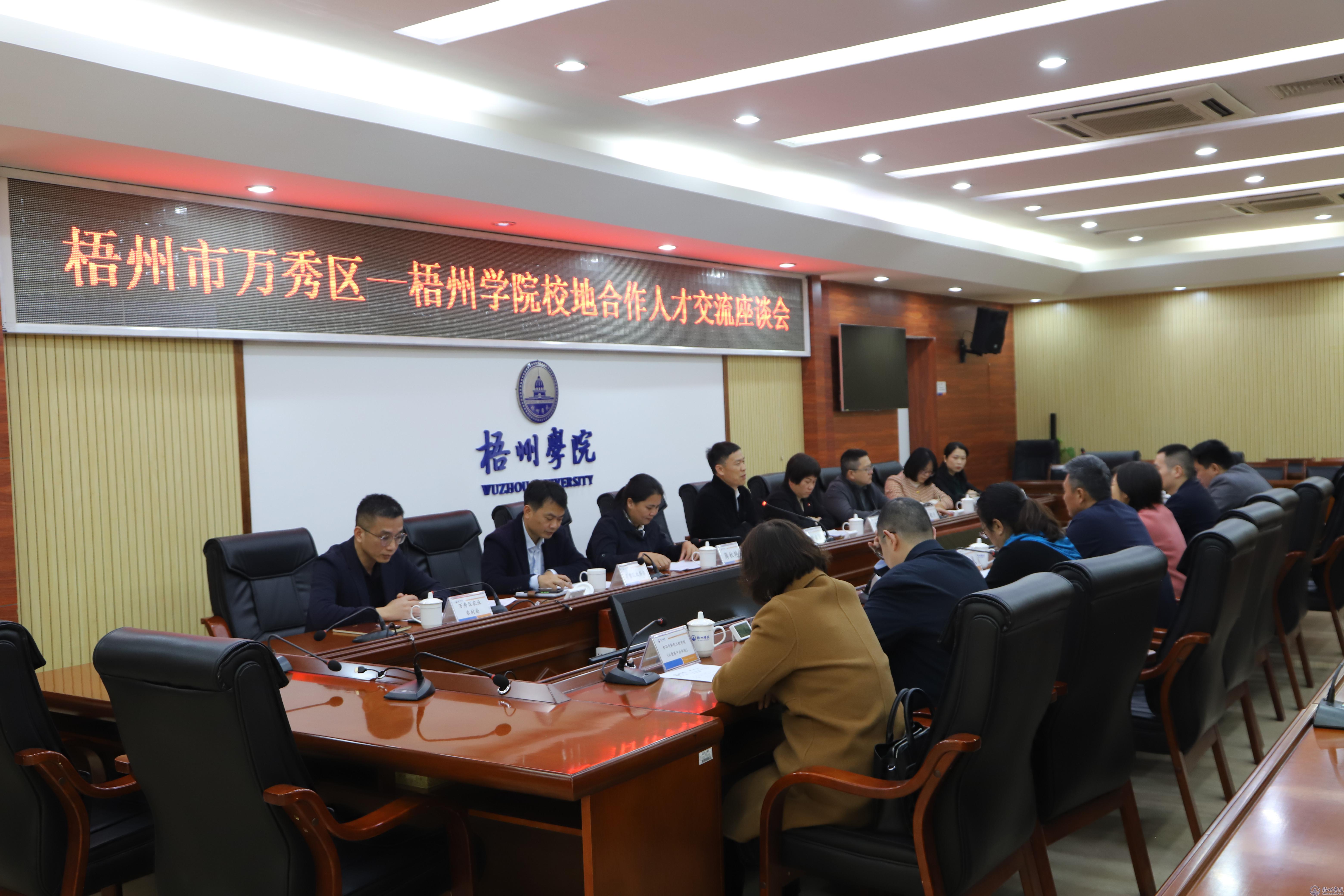 1月8日上午,万秀区委书记黄来焕带队来校开展校地合作人才交流座谈,座谈会在明理楼八楼第一会议室召开。学校副校长莫晨宇,万秀区委副书记、区长易洁出席座谈会。