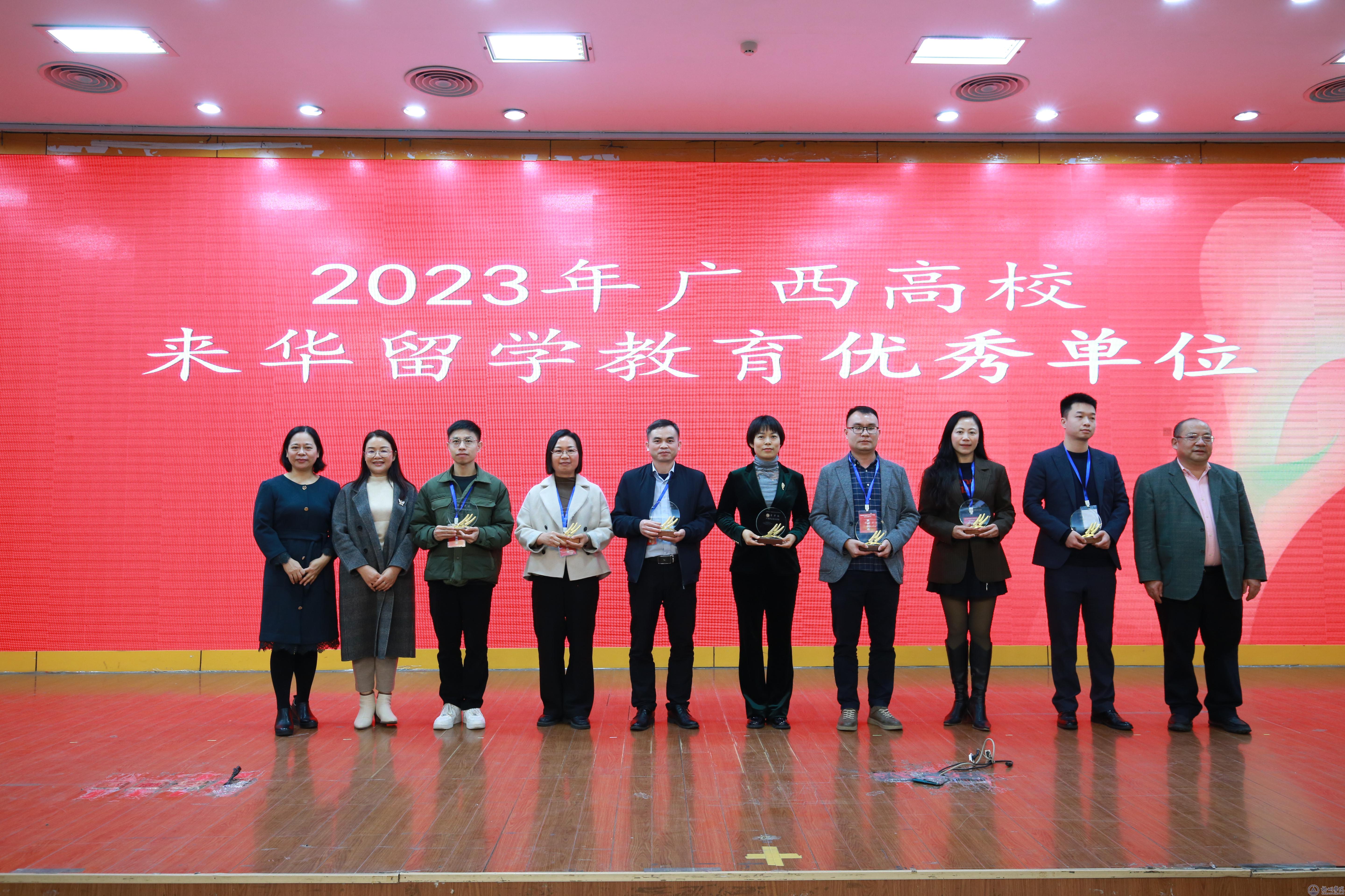 1月9日,在广西高等教育学会外国留学生教育管理专业委员会2023年年会暨表彰大会上,我校获2023年度“广西高校来华留学教育优秀单位”称号,何恩获2023年度“广西高校来华留学教育优秀个人”称号,梁妮获2023年度“广西高校来华留学教育优秀辅导员”称号。