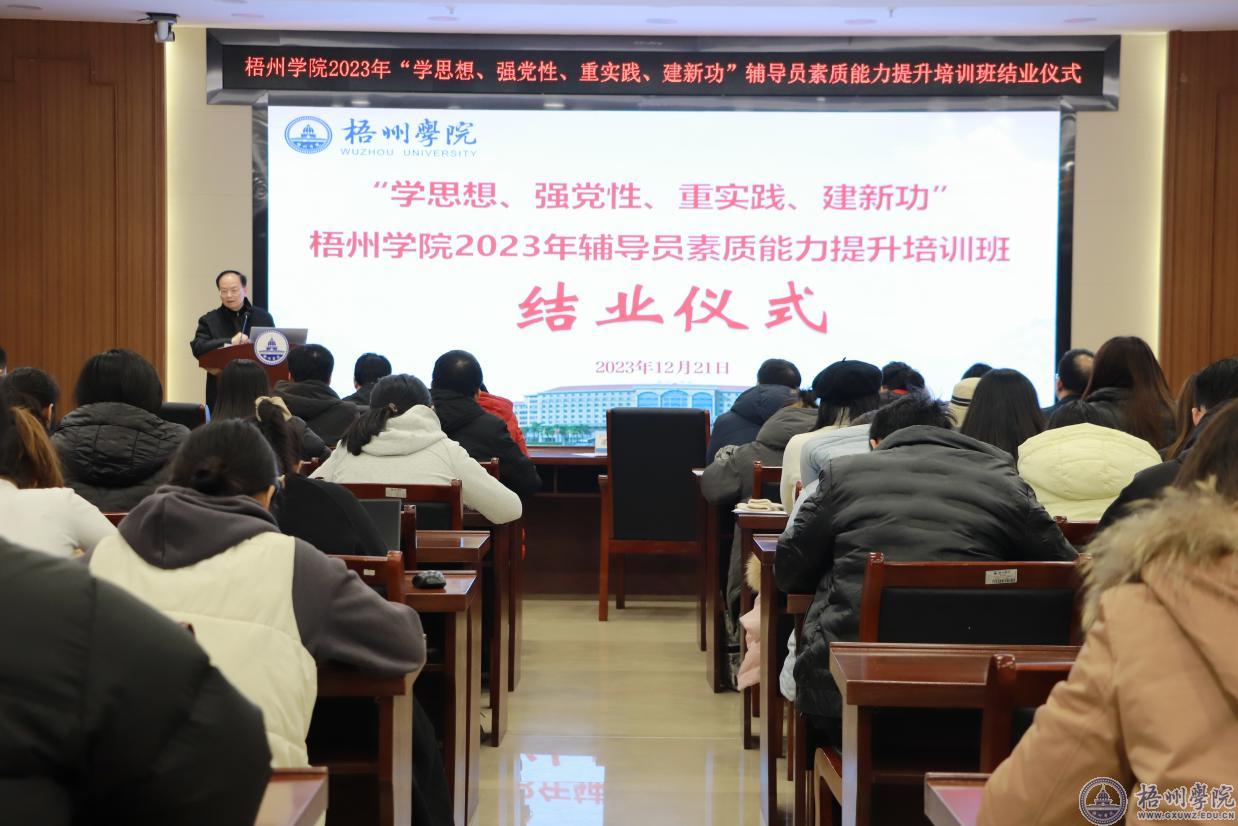 12月21日,学校2023年“学思想、强党性、重实践、建新功”辅导员素质能力提升培训班结业仪式在明科楼一楼报告厅举行。学校党委副书记梁业华出席结业仪式,学生工作部(处)、校团委负责人,各二级学院分管学生工作负责人、培训班全体学员参加结业仪式。