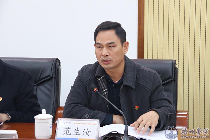 学校党委理论学习中心组成员、学校中层正职(含主持工作副职)参加学习会。自治区教育厅学校安全稳定工作处处长周献兴列席旁听。学校党委书记韦仕珍主持会议。