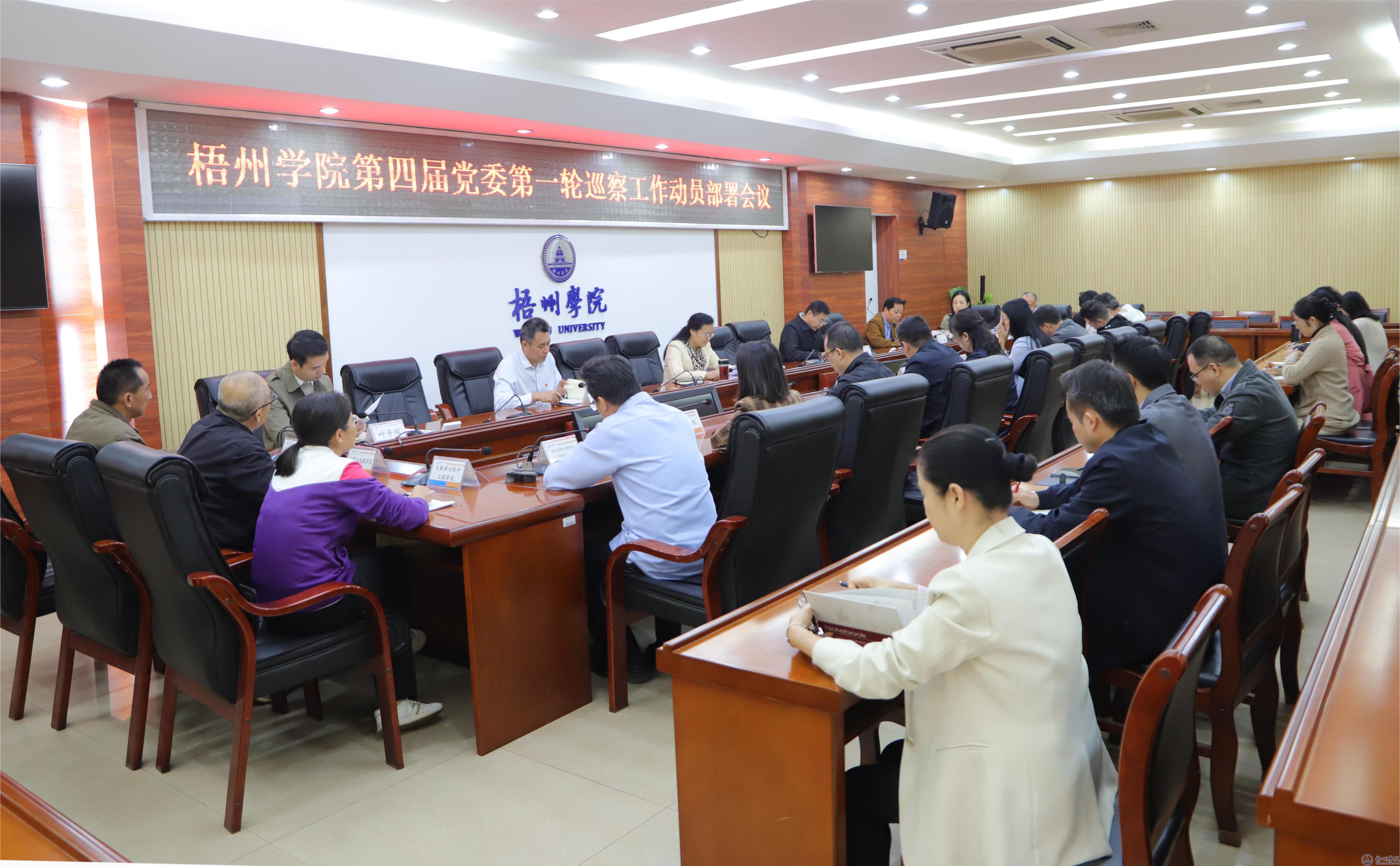 会上,宾月景传达了党中央、自治区党委和学校党委对巡视巡察工作的有关要求。学校党委常委、组织部部长黄健武宣读了学校党委第一轮巡察授权决定。经学校党委巡察工作领导小组研究,任命机械与资源工程学院党委副书记许玉婷同志担任梧州学院第四届党委第一轮巡察组组长,任命大数据与软件工程学院副院长莫智懿同志担任梧州学院第四届党委第一轮巡察组副组长,对宝石与艺术设计学院党委、法学院党委开展巡察。