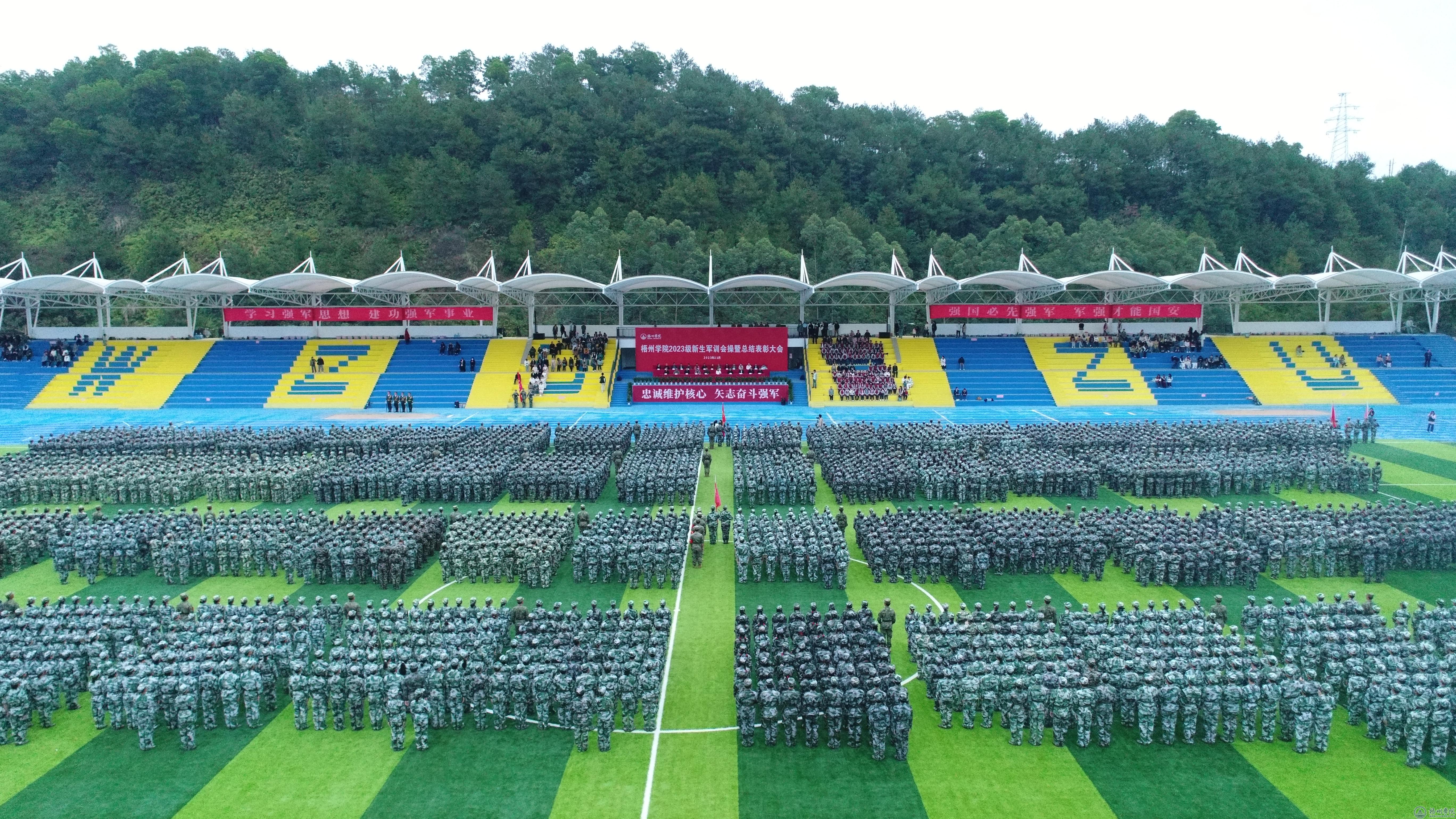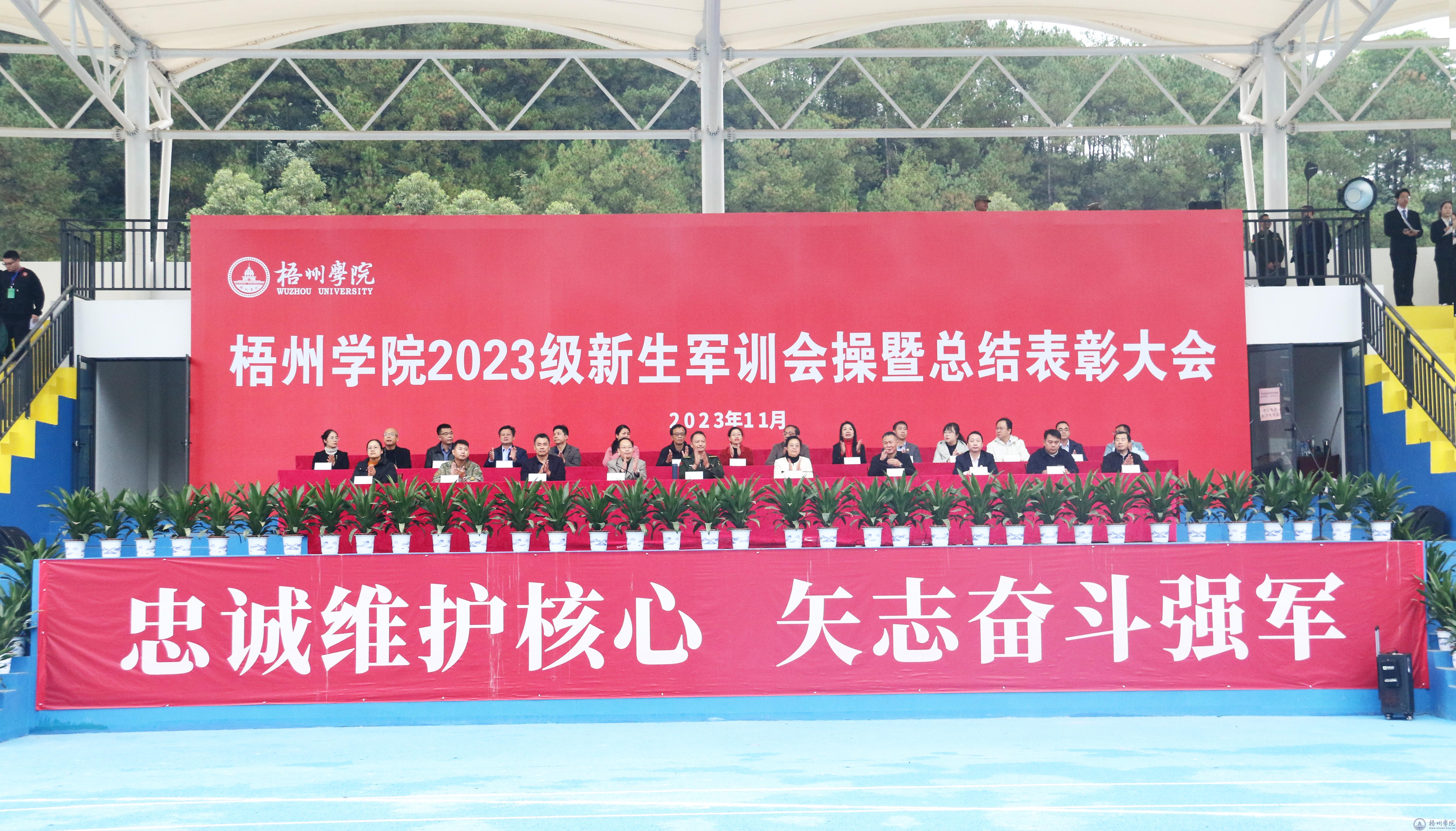 斜风细雨,沙场点兵。11月30日上午,学校在北校区田径场举行2023级新生军训会操暨总结表彰大会。梧州军分区大校副司令董永洪,学校党委书记韦仕珍、副校长覃雄彪,万秀区武装部领导、学校军训领导小组成员,2023级普高新生辅导员、班主任代表参加大会。大会由学校党委副书记梁业华主持。