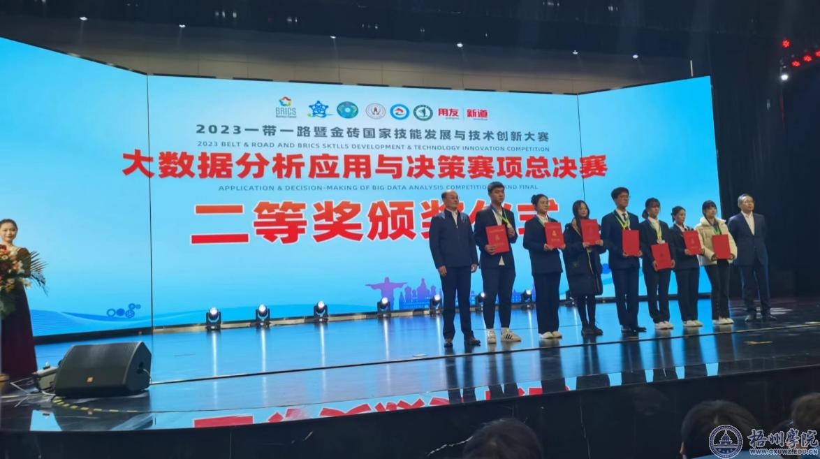 11月26日,2023第七届一带一路暨金砖国家技能发展与技术创新大赛大数据分析应用与决策赛项总决赛(以下简称“金砖全国总决赛”)成功落幕。以2021级人力管理本科班学生组成的团队在金砖全国总决赛人力赛道中荣获二等奖。