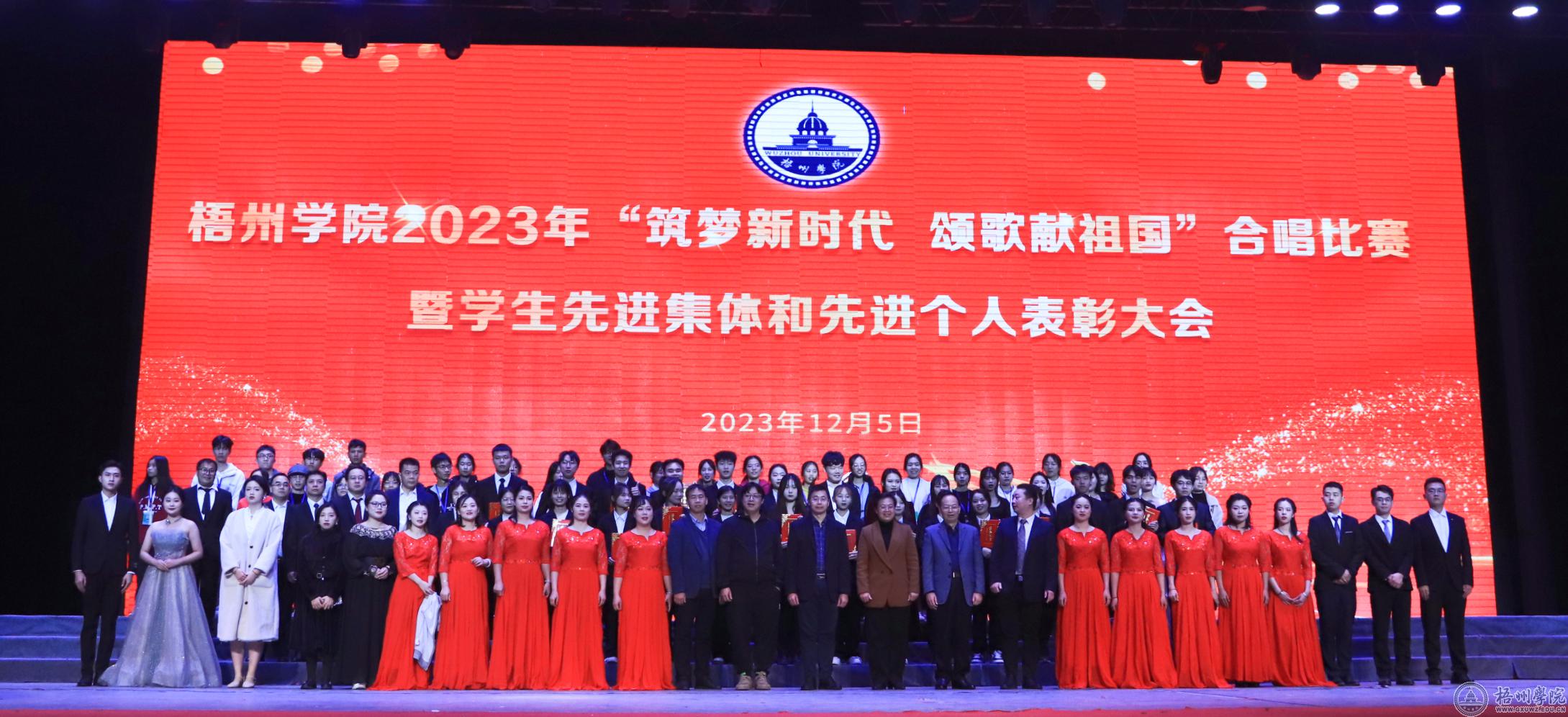 为弘扬爱国主义精神,表彰先进,12月5日晚,学校在体育馆三楼主会场举行“筑梦新时代 颂歌献祖国”合唱比赛暨学生先进集体和先进个人表彰大会。学校党委书记韦仕珍、党委副书记梁业华、纪委书记宾月景出席活动。党委组织部、党委宣传部、学生工作部(处)、教务处、校团委,各二级学院分管学生工作负责人,全体辅导员,2023级班主任代表参加大会。