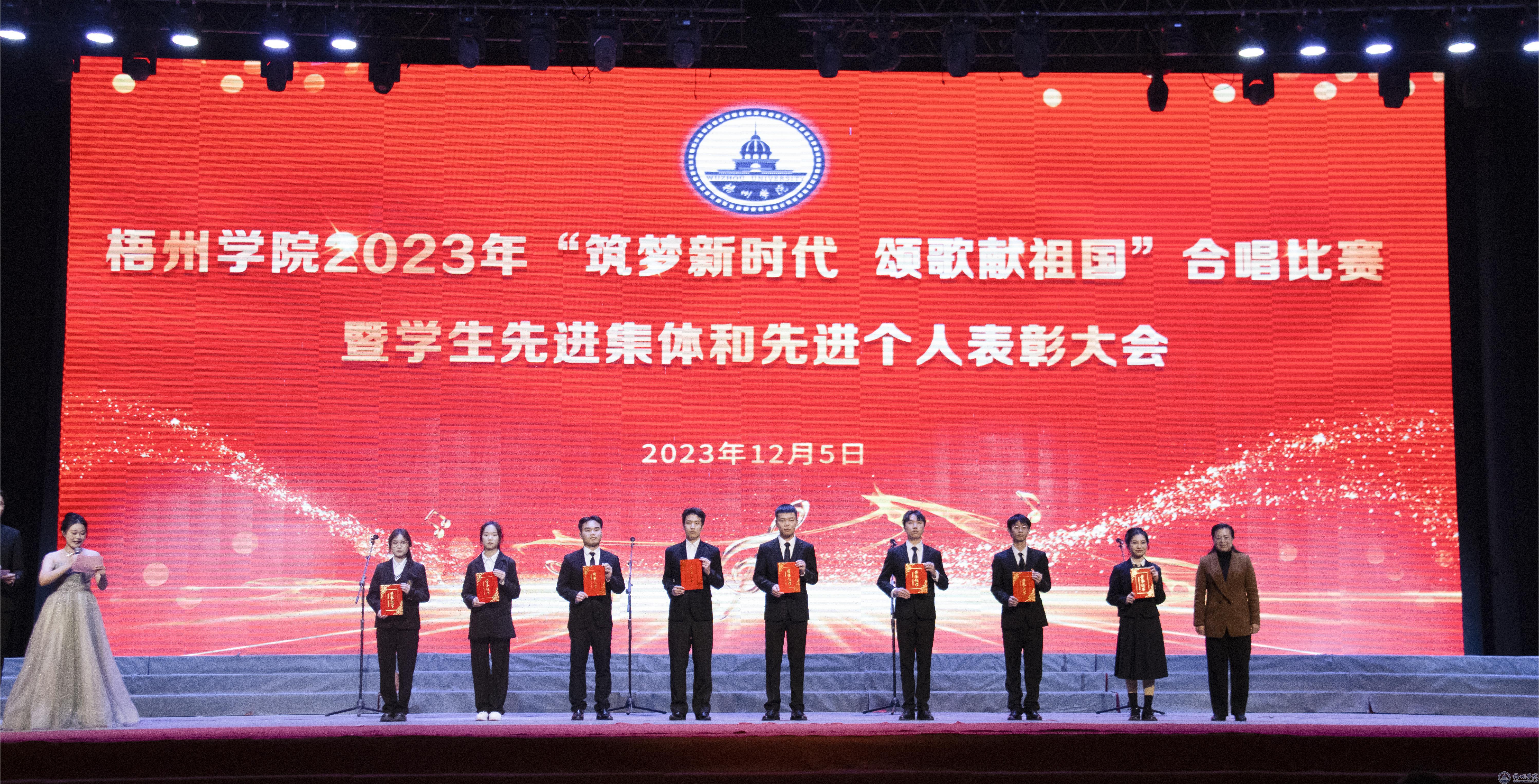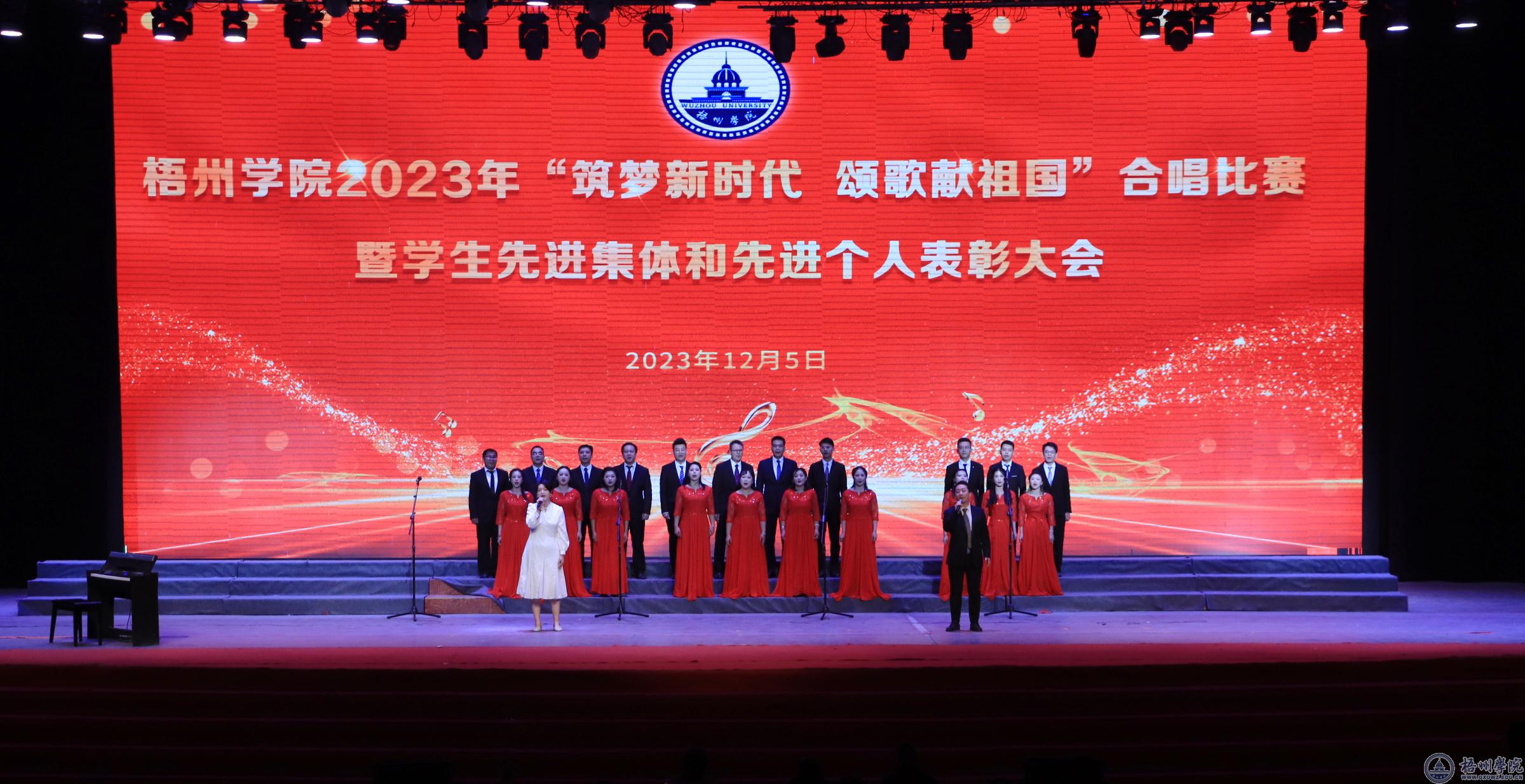 大会合唱比赛在教工合唱团表演的《感恩》与《寸心》中拉开序幕。来自各二级学院的参赛队伍表演了12个参赛合唱曲目,用嘹亮的歌声抒发对祖国的热爱之情,诠释了梧院青年听党话、跟党走的坚定信念。在嘉宾表演环节,学工队伍代表表演了小合唱《东方之珠》,文传学院表演了舞蹈《青春有你》,教师教育学院2023级音乐学班表演合唱《花儿与少年》。经过角逐,大赛决出最佳指导奖(团队)2名、优秀指挥奖3名、最佳创意奖2名、最佳风采奖2名、最佳表演奖1名、合唱比赛一等奖2个单位、合唱比赛二等奖4个单位、合唱比赛三等奖6个单位。学校领导、二级学院党委书记分别为获奖的单位和个人颁奖。