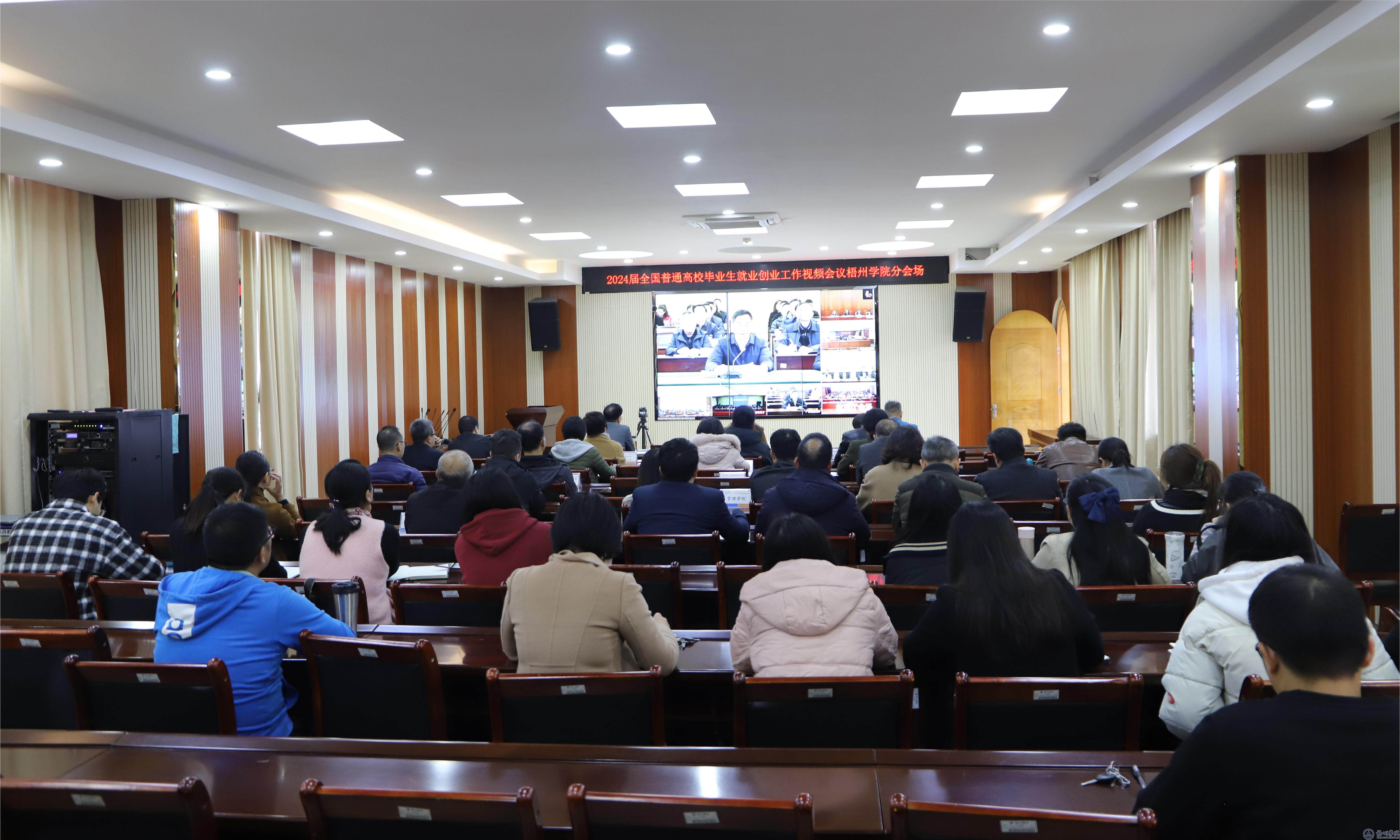 12月5日下午,教育部、人力资源社会保障部联合召开2024届全国普通高校毕业生就业创业工作视频会议,湖南省人力社会资源保障厅及党主书记厅长李永军同志、东北大学党委书记郭海同志、人力社会资源保障部党组成员副部长吴秀章同志等人出席会议并讲话,会议由教育部副部长翁铁慧主持。我校在明理楼七楼视频会议室设置分会场,学校党委书记韦仕珍、党委副书记梁业华参加会议。党委(校长)办公室、党委组织部、党委宣传部、学生工作部(处)、教务处、校团委、创新创业教育学院、各二级学院主要负责人、分管就业创业工作领导、2024届毕业班辅导员、招生办公室负责人、学生工作部(处)就业办公室全体人员参加会议。