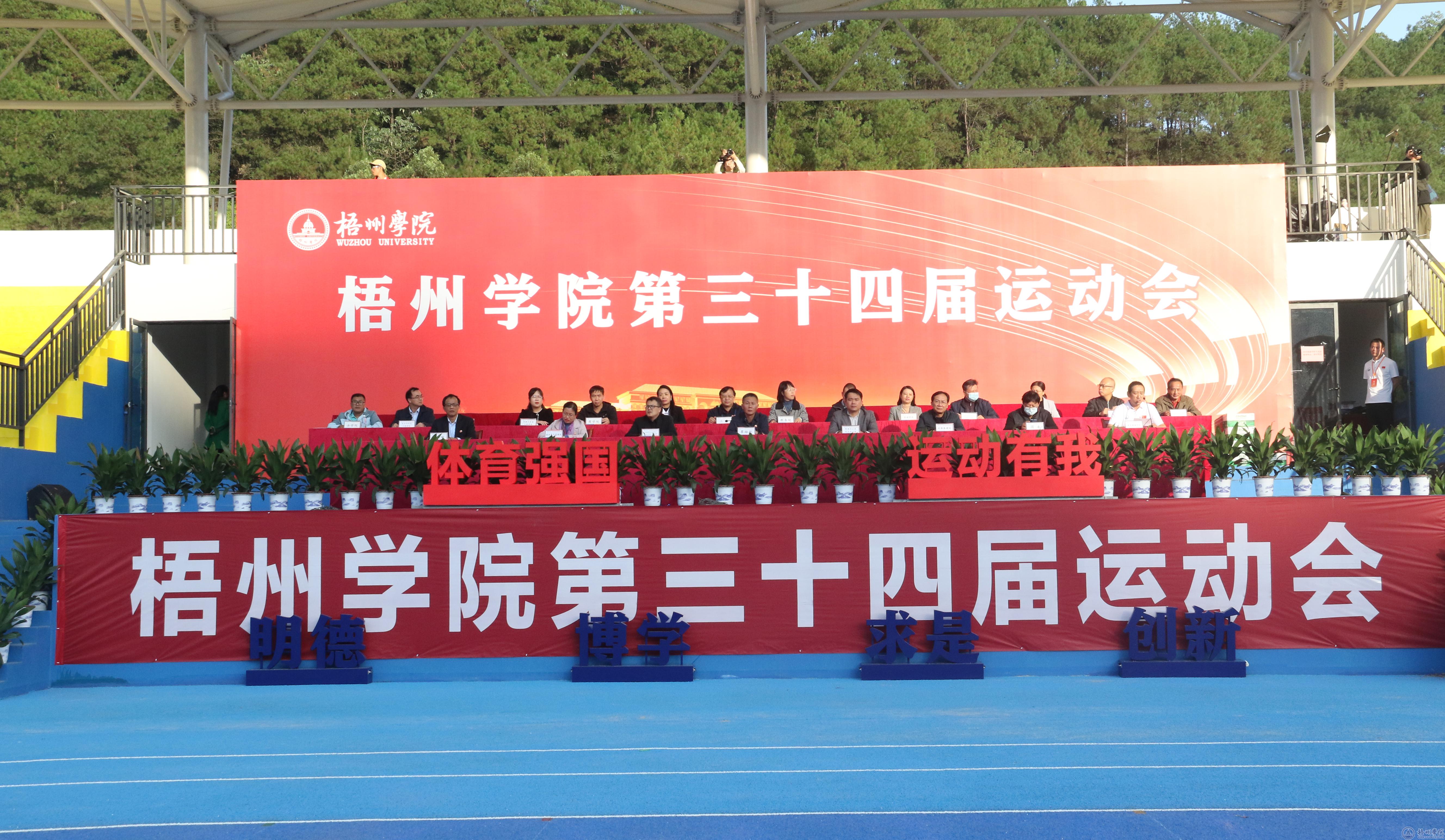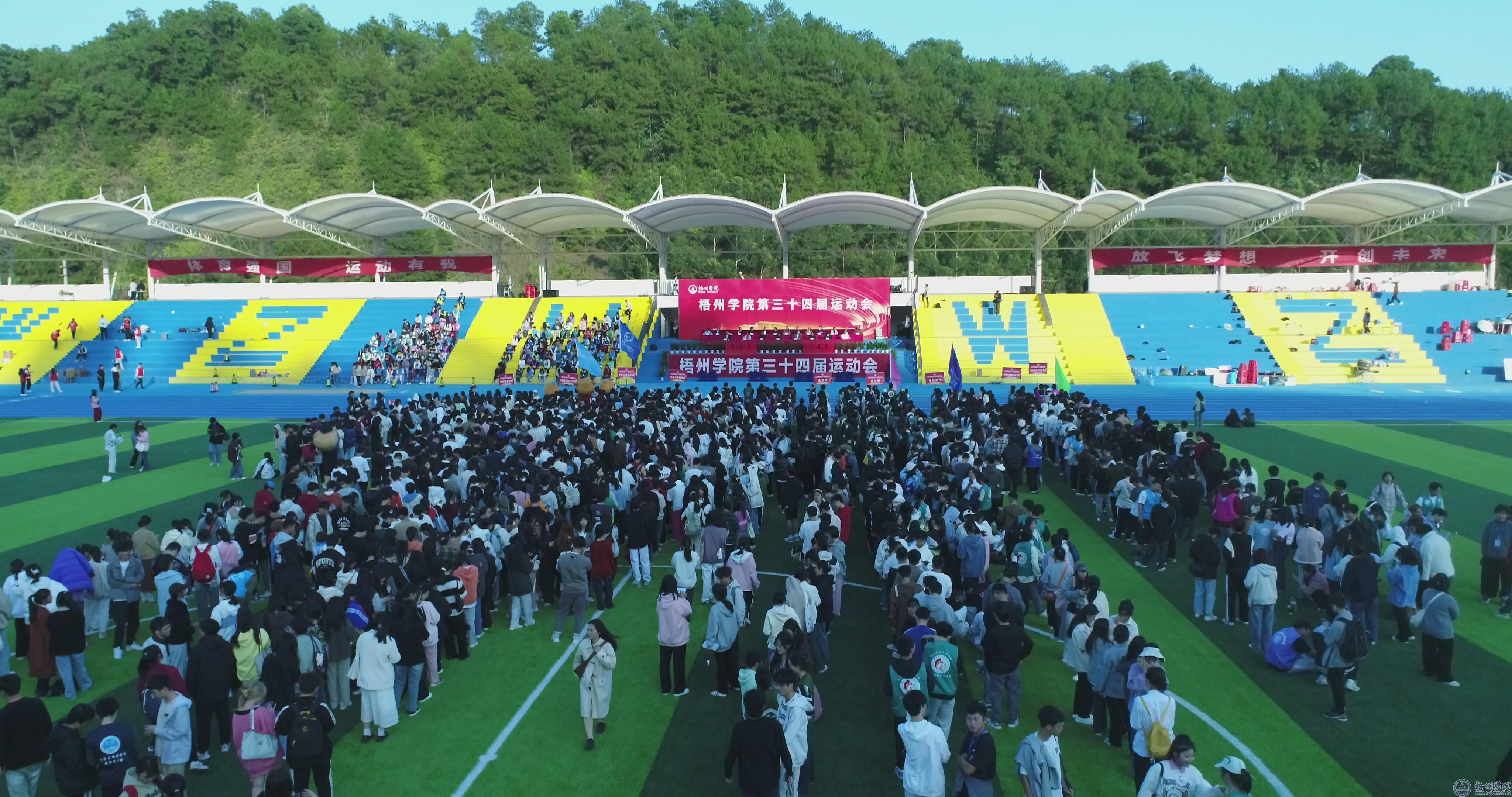 伴随着梧州学院校歌,梧州学院第三十四届运动会会旗缓缓降落,梧州学院第三十四届运动会圆满闭幕。