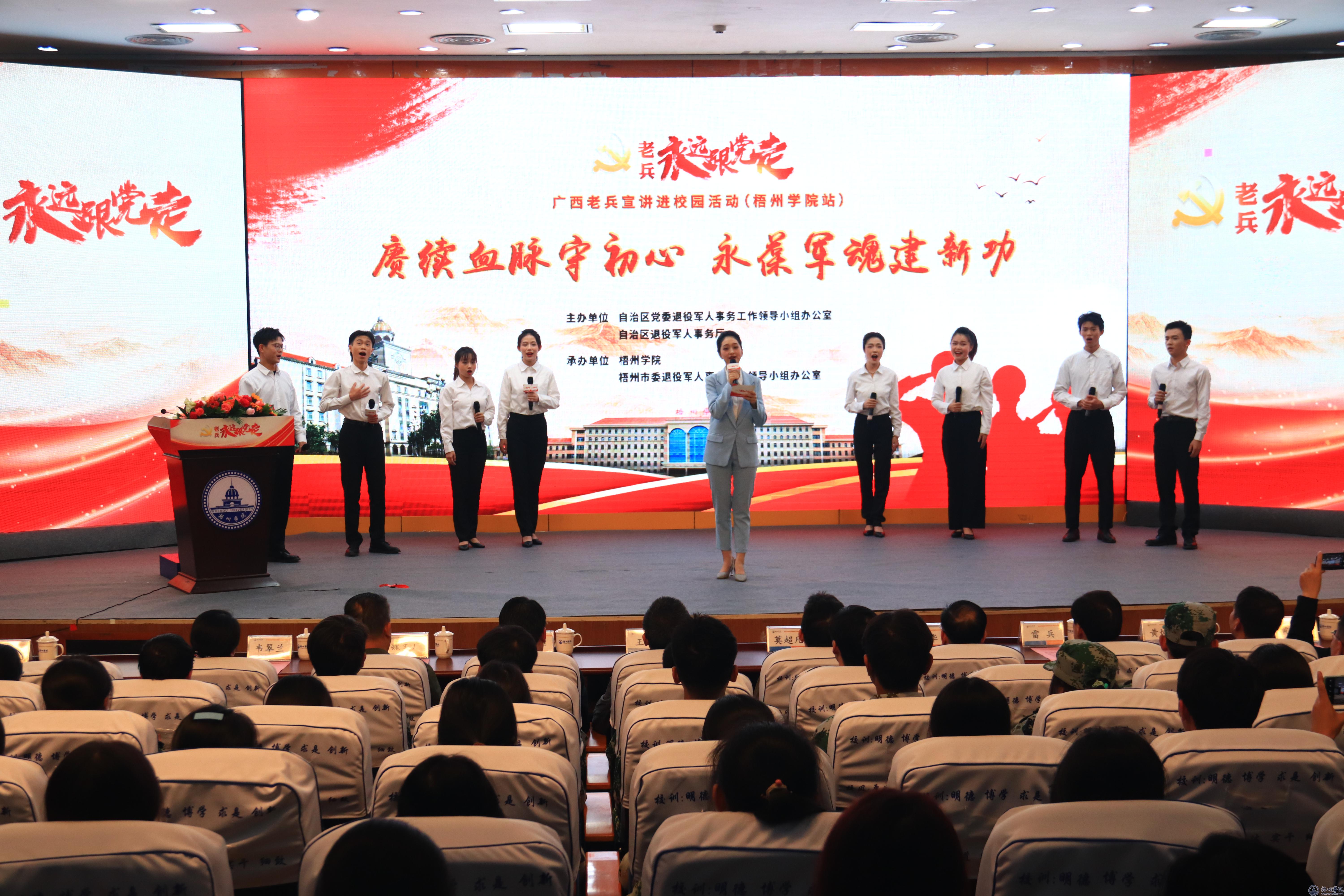 梧州市机关事业单位退役军人代表,学校学生工作部(处)负责人,各二级学院分管学生工作副书记、各二级学院分团委负责人、辅导员代表、学生代表参加上述活动。
