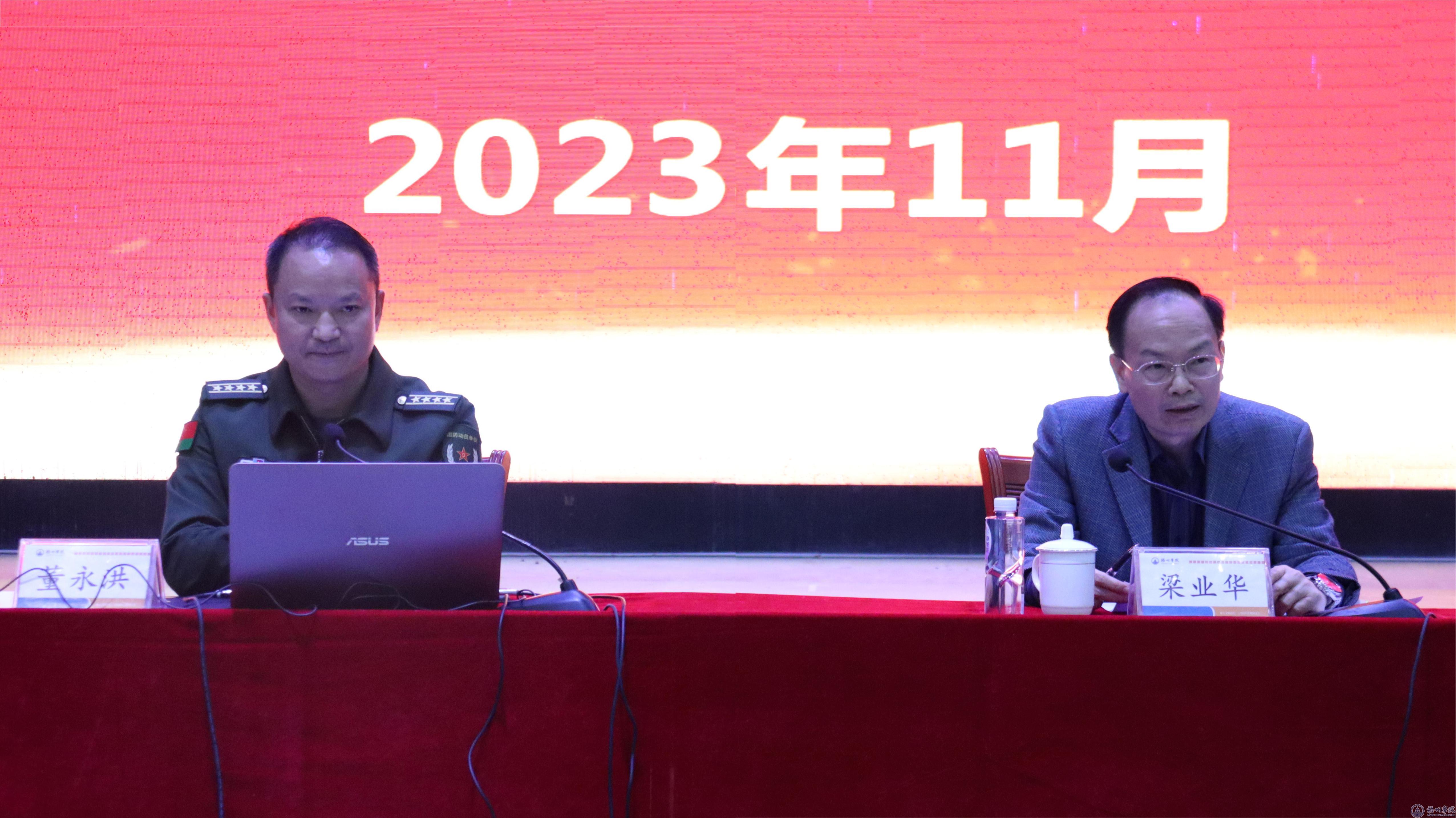 为进一步提升大学生国防素养,增强国防观念和国家安全意识,推动大学生投身国防事业,11月21日,学校在体育馆三楼召开大学生国防教育专题讲座。邀请了梧州军分区副司令董永洪大校作题为《世界百年大变局下的中美博弈》的讲座。学校党委副书记梁业华主持讲座。