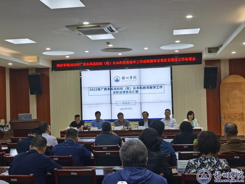 10月10日上午,学校在明理楼七楼视频会议室召开2022年广西本科高校校(院)长本科教育教学工作述职测评反馈意见整改工作布置会,学校领导杨奔、邱房贵、麻新纯、范生汝、覃雄彪、莫晨宇出席会议,会议由学校副校长覃雄彪主持。