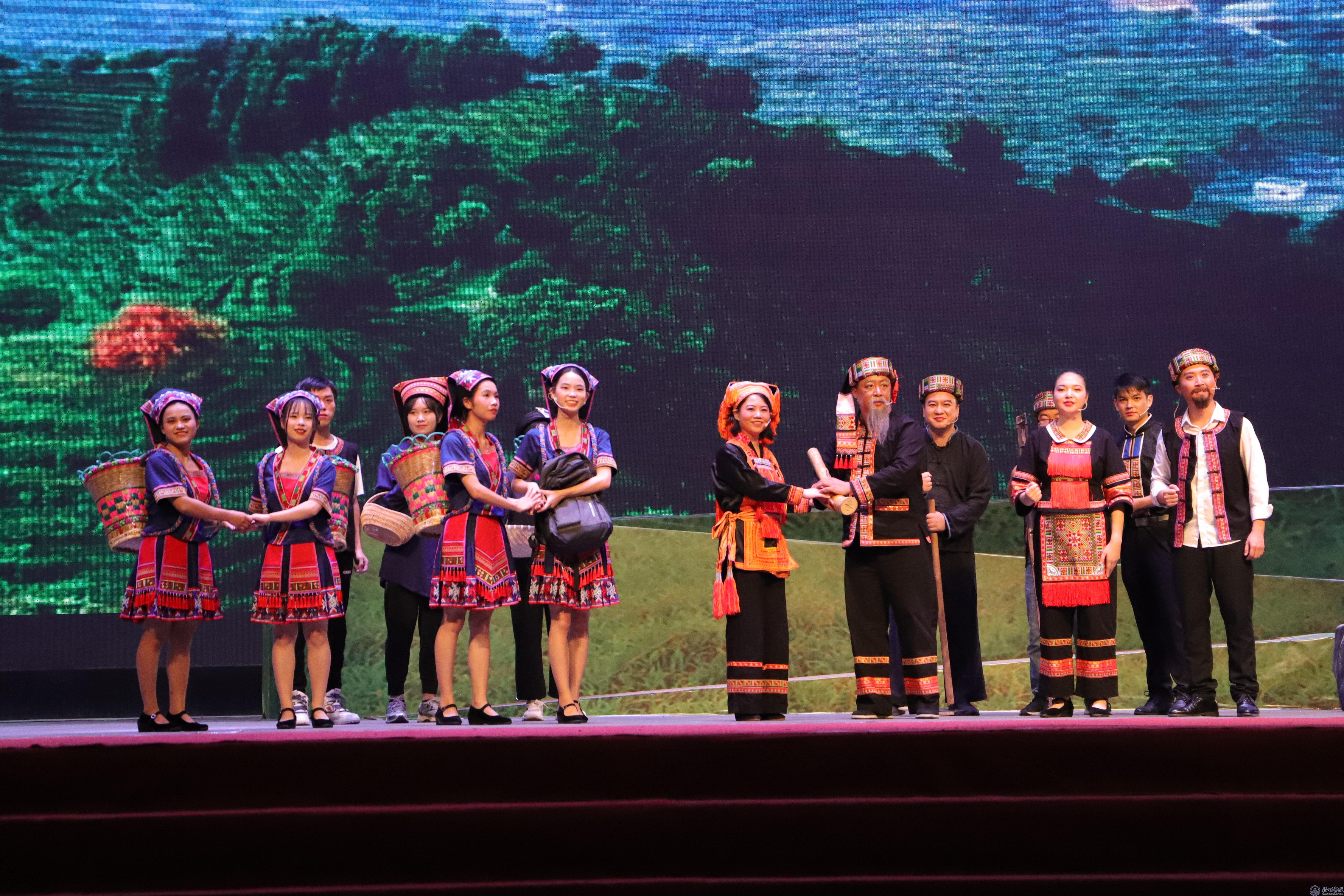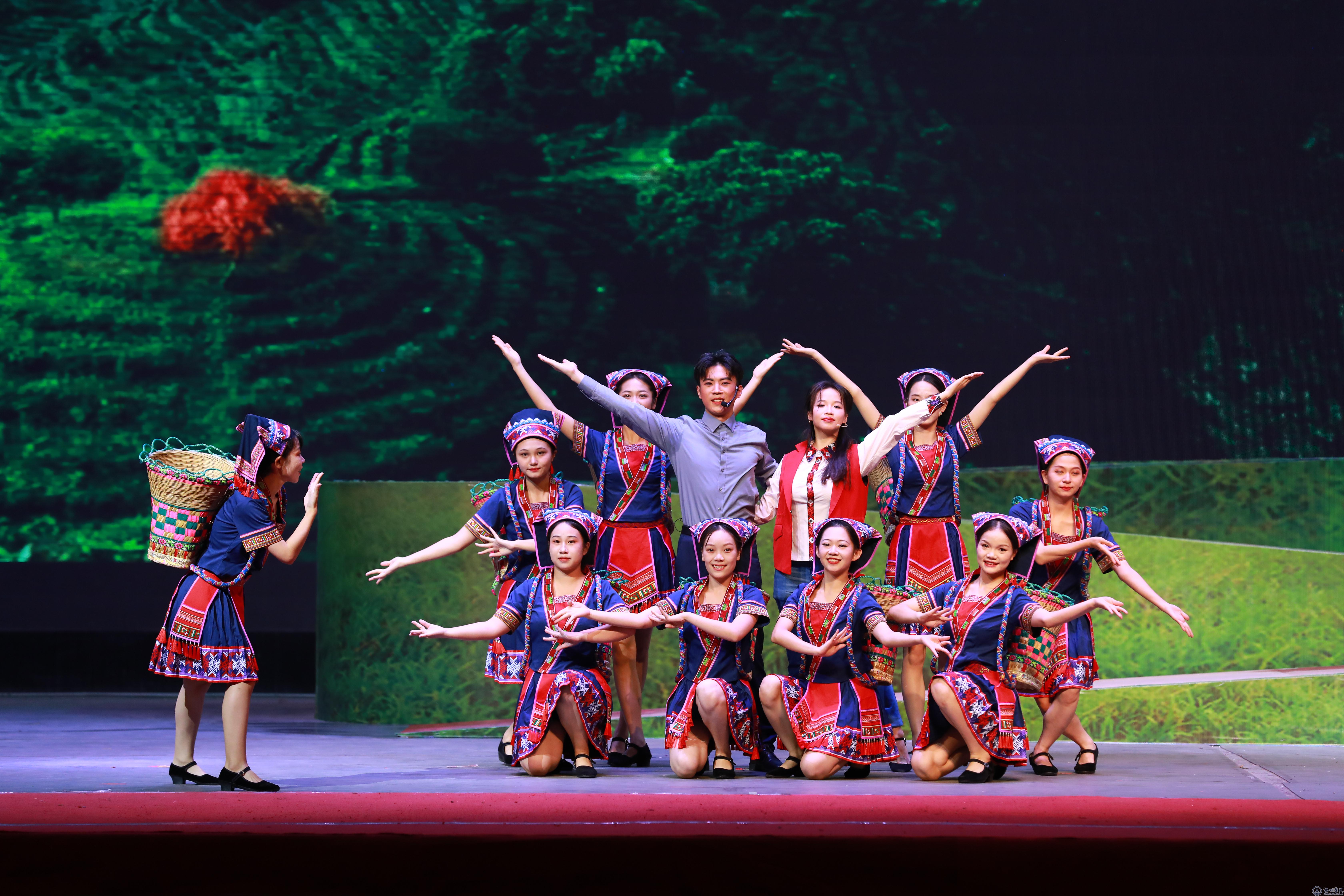 情景剧以自治区非物质文化遗产项目六堡茶制作技艺代表性传承人、六堡镇山坪村党支部书记祝雪兰带领村民发展六堡茶产业,使小茶叶成就乡村振兴大产业、走出一条茶旅融合的乡村发展新路子的故事为切入点,将乡村振兴过程中困惑、艰难与成功,亲情、友情、爱情,“小家”与“大家”情感矛盾交织在一起,扣人心弦的画面,一次次拨动观众的心弦,现场不时响起阵阵掌声。情景剧突出原创性,舞台舞美凸显梧州特色,特别是融入了山歌、粤语、歌舞《山歌唱得茶花开》等元素,展现了鲜明的时代特征与浓郁的地方文化特色。