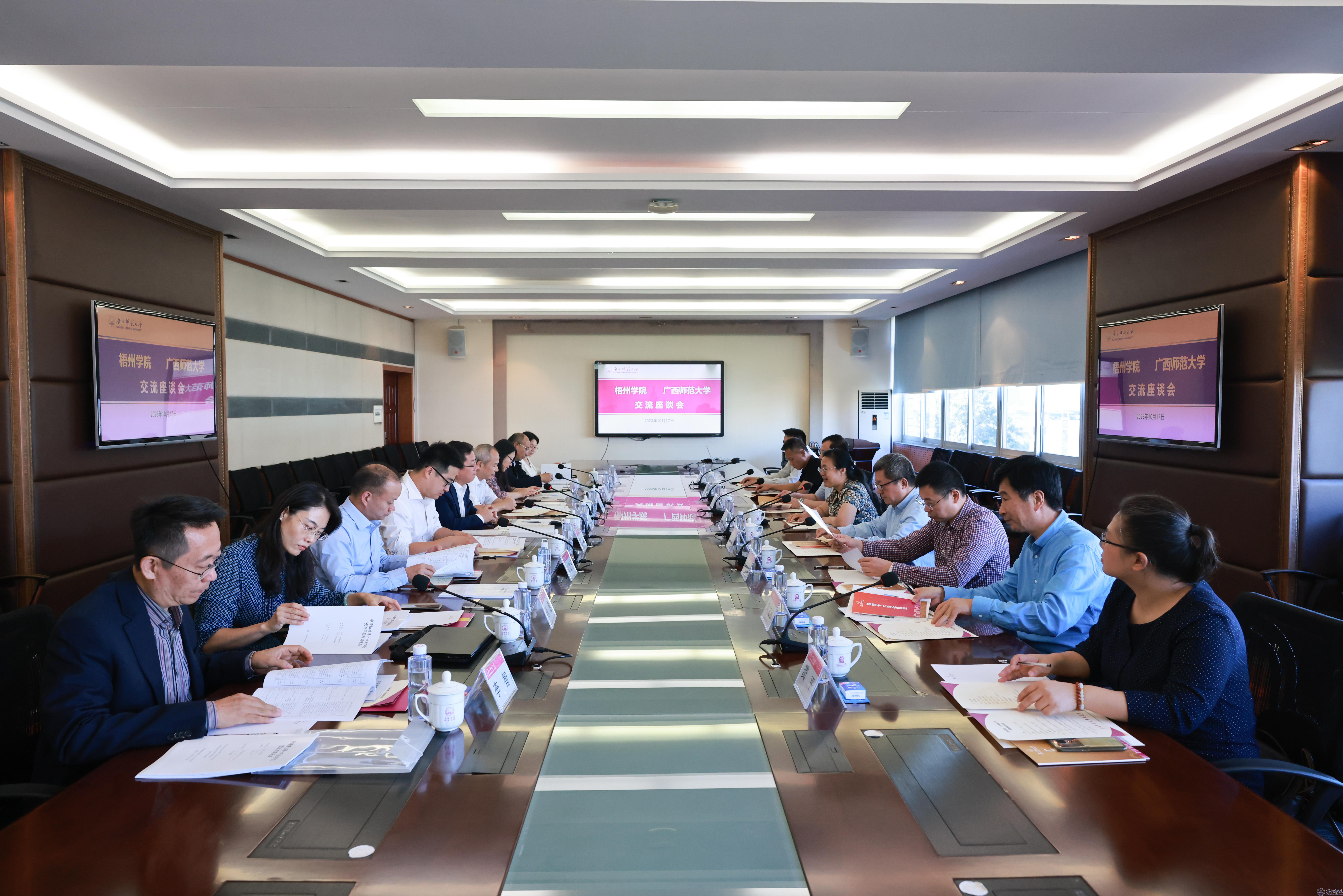 10月17日,韦仕珍书记、杨奔校长带队赴广西师范大学就学科建设等进行交流学习。广西师范大学党委书记贺祖斌热情接待了韦仕珍书记、杨奔校长一行。学校副校长麻新纯、纪委书记宾月景、副校长覃雄彪,党委(校长)办公室、发展规划处等处室负责同志参加了交流活动。