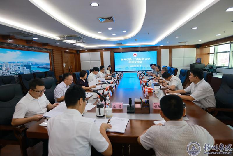 近期,校党委书记韦仕珍、校长杨奔带队到广西医科大学就学科建设、高等教育治理能力现代化建设等进行学习交流,广西医科大学党委书记黄照权、校长曾志羽热情接待了校党委书记韦仕珍、校长杨奔一行。学校副校长麻新纯、纪委书记宾月景,学校党委(校长)办公室、发展规划处负责人参加有关活动。